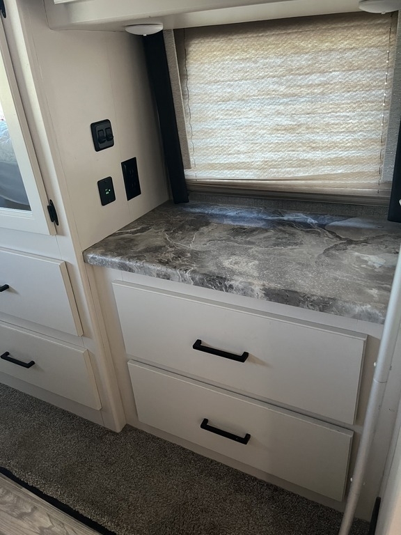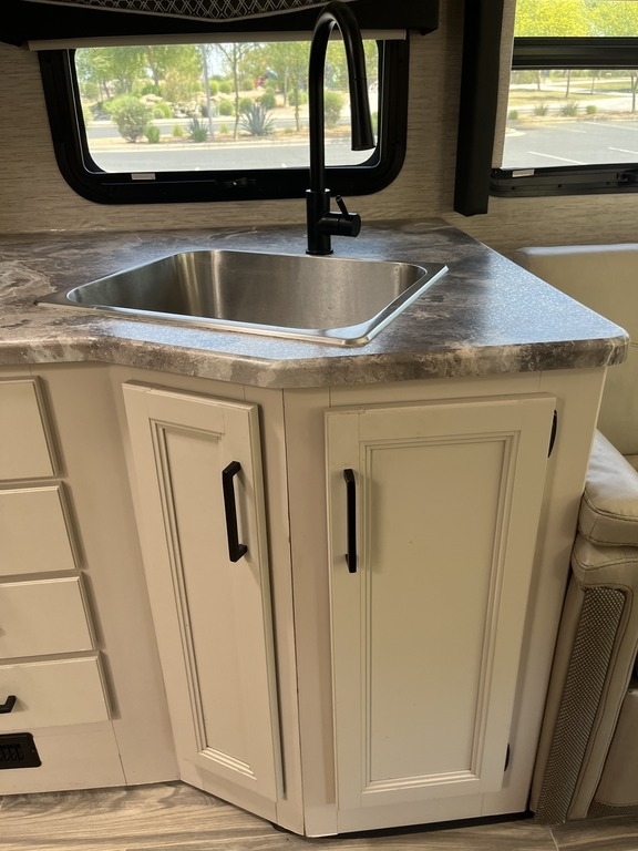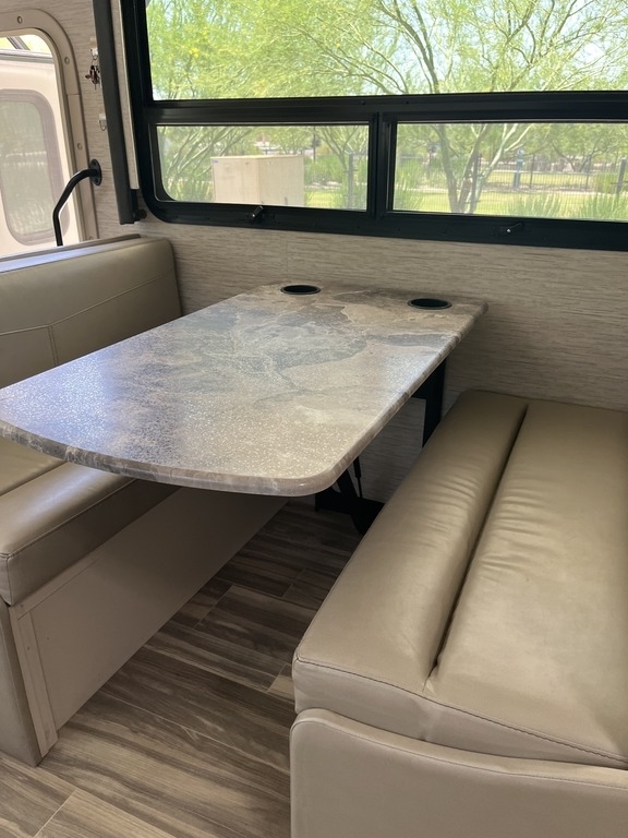 drawers, LED interior lighting, sleeps 6 with sofa bed, dinette with cup