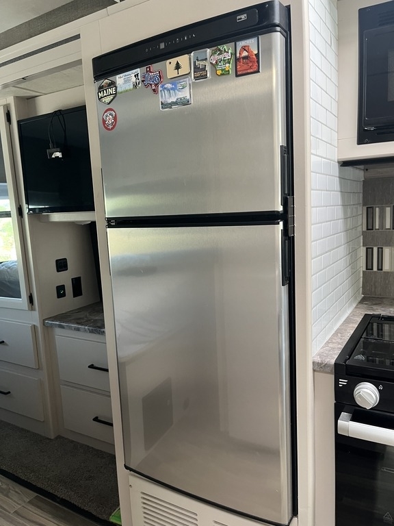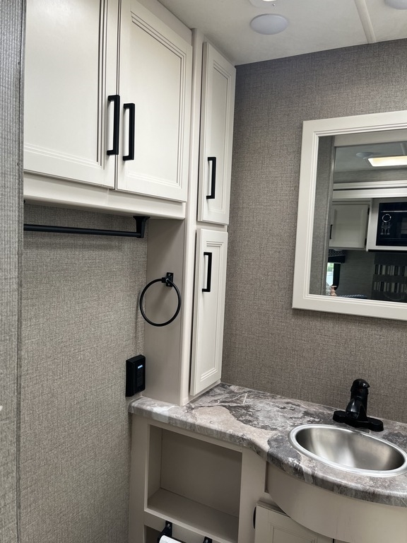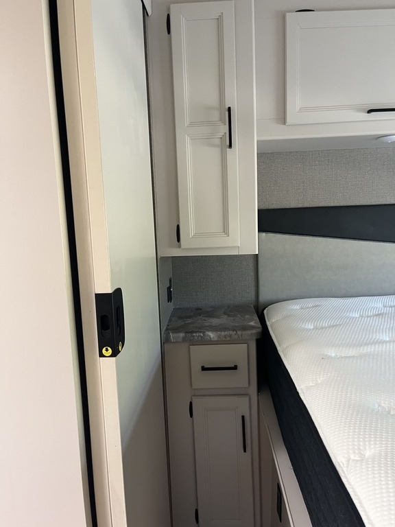 Electronic drop-down hide-away overhead bunk with ladder. Kitchen: 2-door