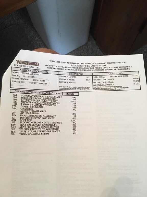 This 2015 Winnebago Vista is Powered by a 362HP 6.8L Triton V10 Engine, Paired with a TorqShift 5-Speed Automatic Transmission, and Driven on a F-Series Super Duty Chassis with ONLY 9,259 Original Miles!! The Overall Length is 28 Feet and the Unit Comes Equipped with 3 Slide Outs, 1 Awning, 1 A/C Unit with Heat Pump Unit, and Plenty of Room to Sleep 6.