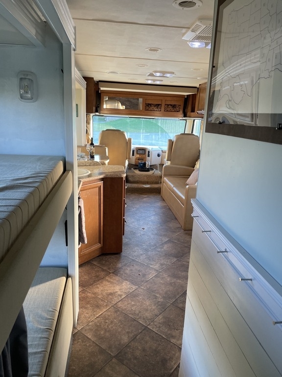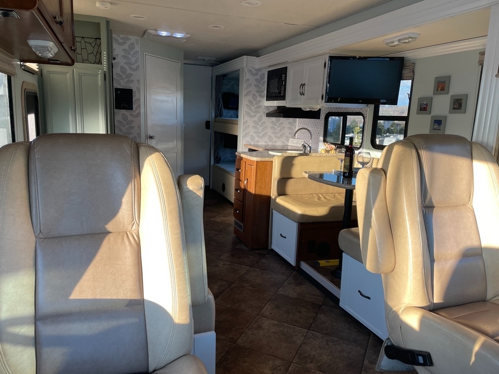 This 2015 Thor A.C.E bunkhouse model is perfect for a family roadtrip! It is powered by a Triton V10 362HP Engine combined with a 5-speed Automatic Transmission on a Ford Chassis with a tow/haul feature to make mountain driving easy, with only 18,636 Miles. The overall length is just 31 feet making this unit much more comfortable to drive and comes equipped with an Onan Generator with only 543 hours on it, 1 Full Wall Super Slide Out, 1 Awning, 1 A/C unit and plenty of room to sleep 10!