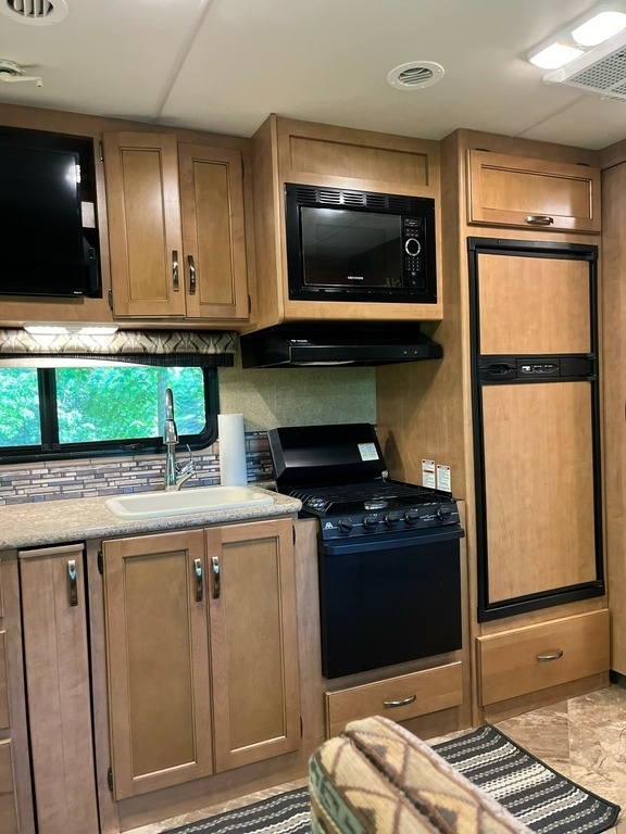equipped with 2 power retractable slide-outs, 1 power retractable awning, 1 AC