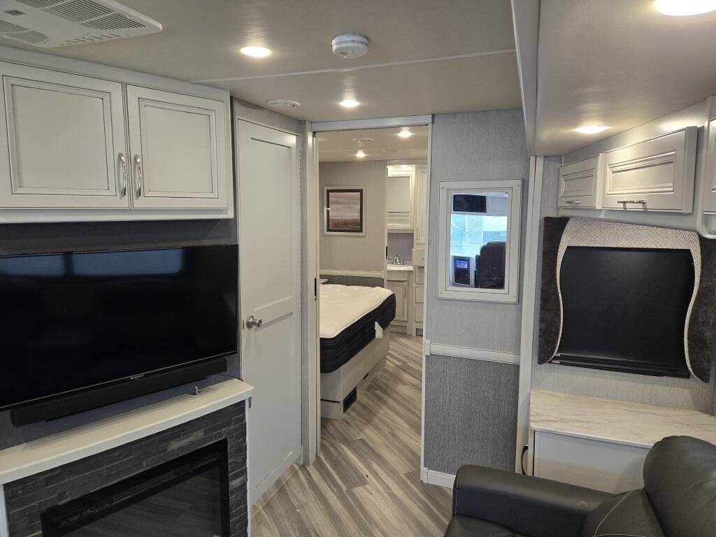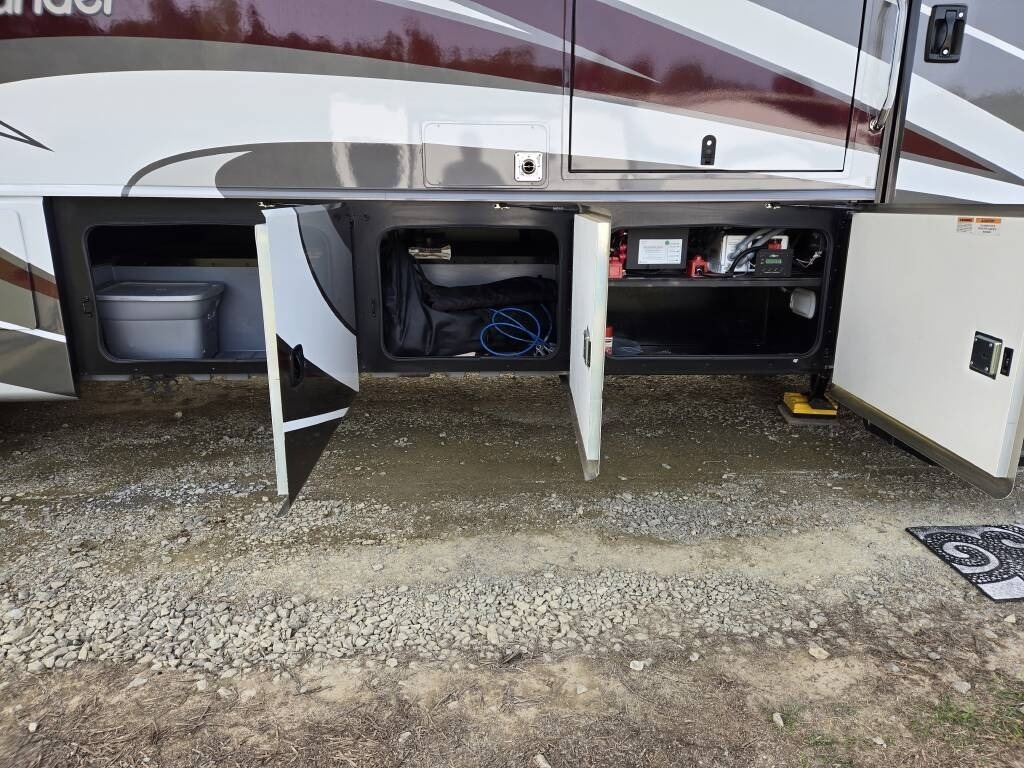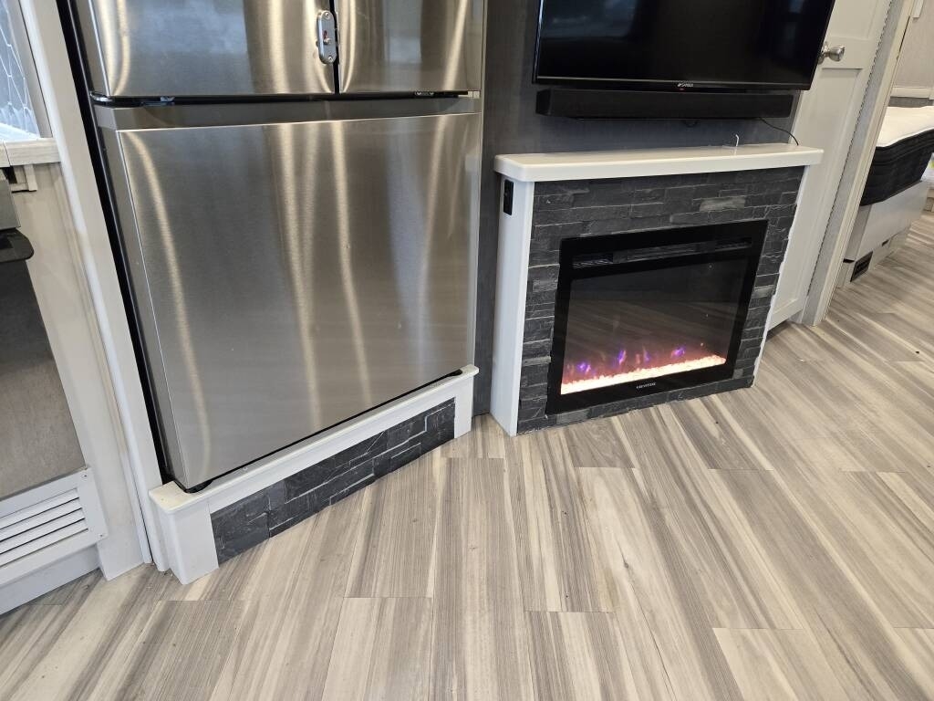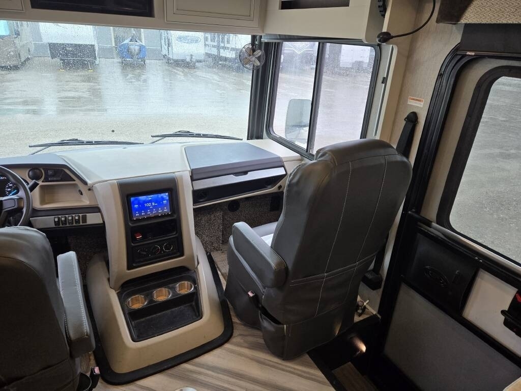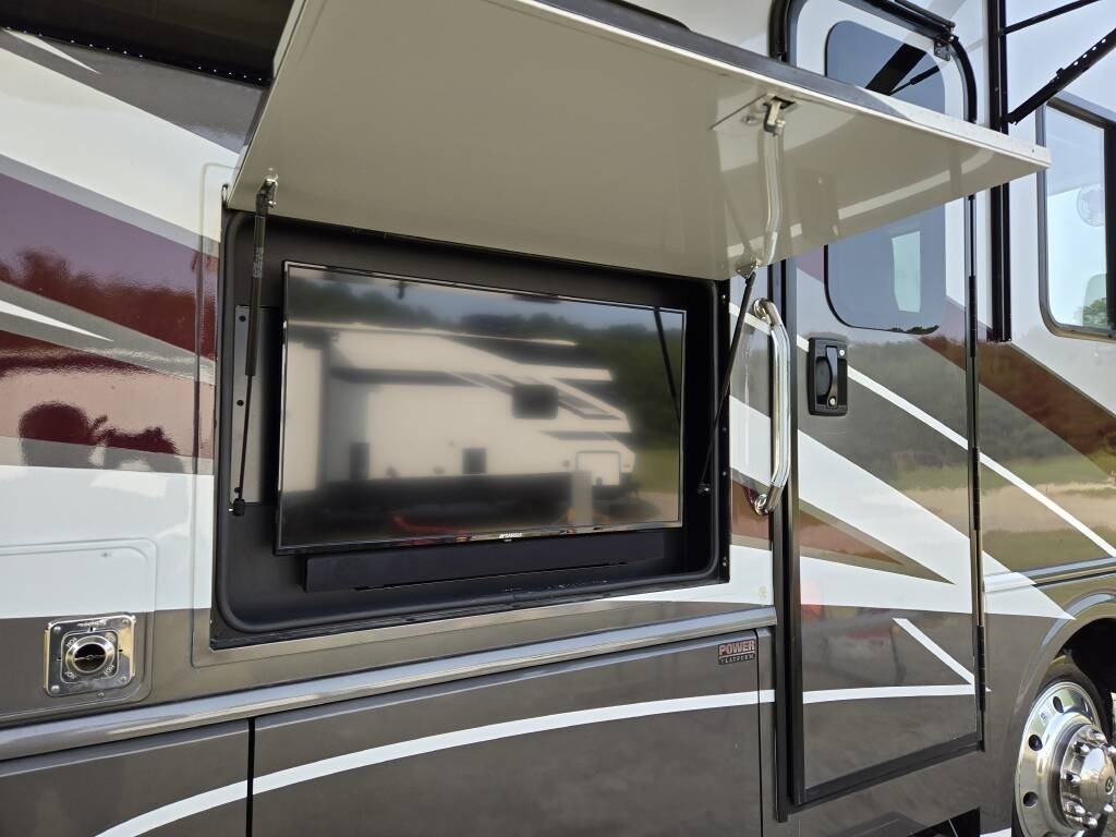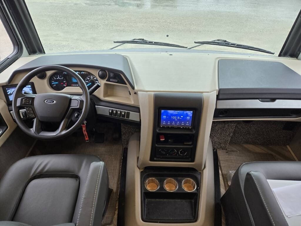 This Fleetwood is powered by a 7.3L Ford Triton V8 engine and a 6-speed automatic transmission with 9,300 miles. The overall length is 36.25 feet and it comes equipped with 2 power retractable slide-outs, a power retractable awning with LED lighting, 2 A/C units, a generator, 1½ baths, a fireplace, washer/dryer, outdoor entertainment, and plenty of room to sleep 6. This unit has been well-maintained.
