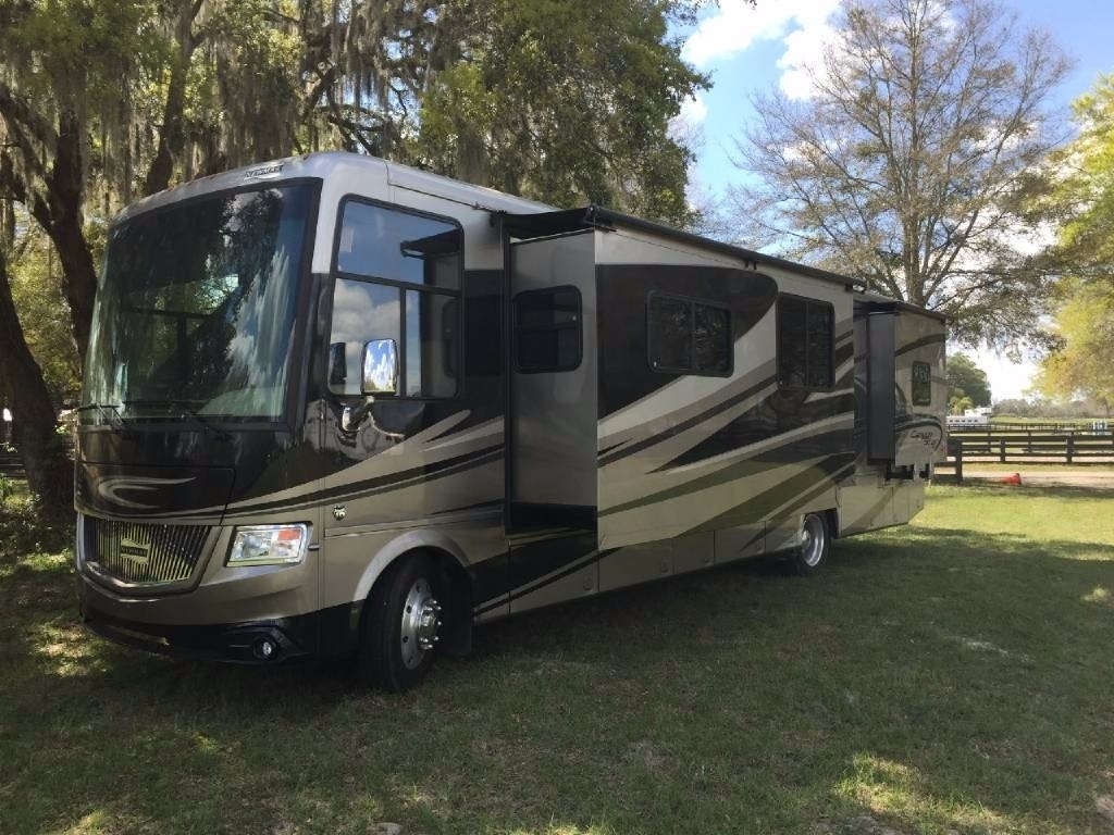 Step into this Newmar Canyon Star and experience the ultimate in sophistication and luxury, featuring hardwood cabinet doors and frames and residential furnishings. This Class A RV has always been well maintained and comes fully equipped with 3 Slide Outs and 1 Awning. It has been meticulously maintained both inside and out. This RV was bought in 2015 has the low mileage of 7,265 miles. It has a Ford F550 motorhome stripped chassis. This Class A motorhome has many great features including a walk through bathroom with shower and sink, toilet in enclosed space behind a door.