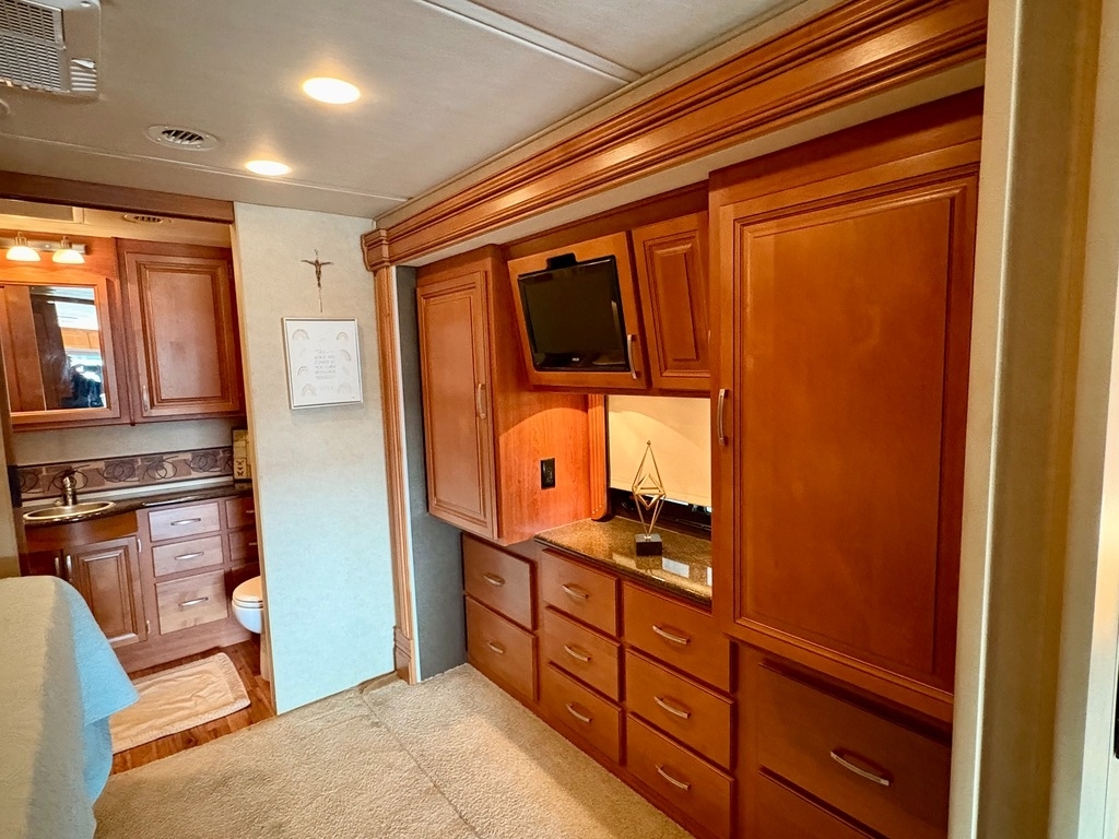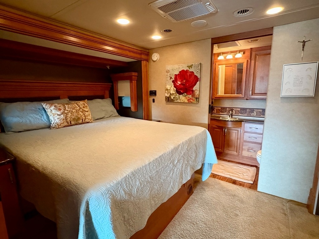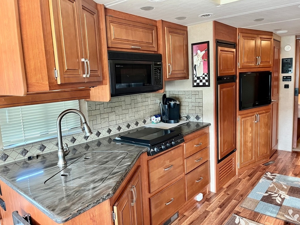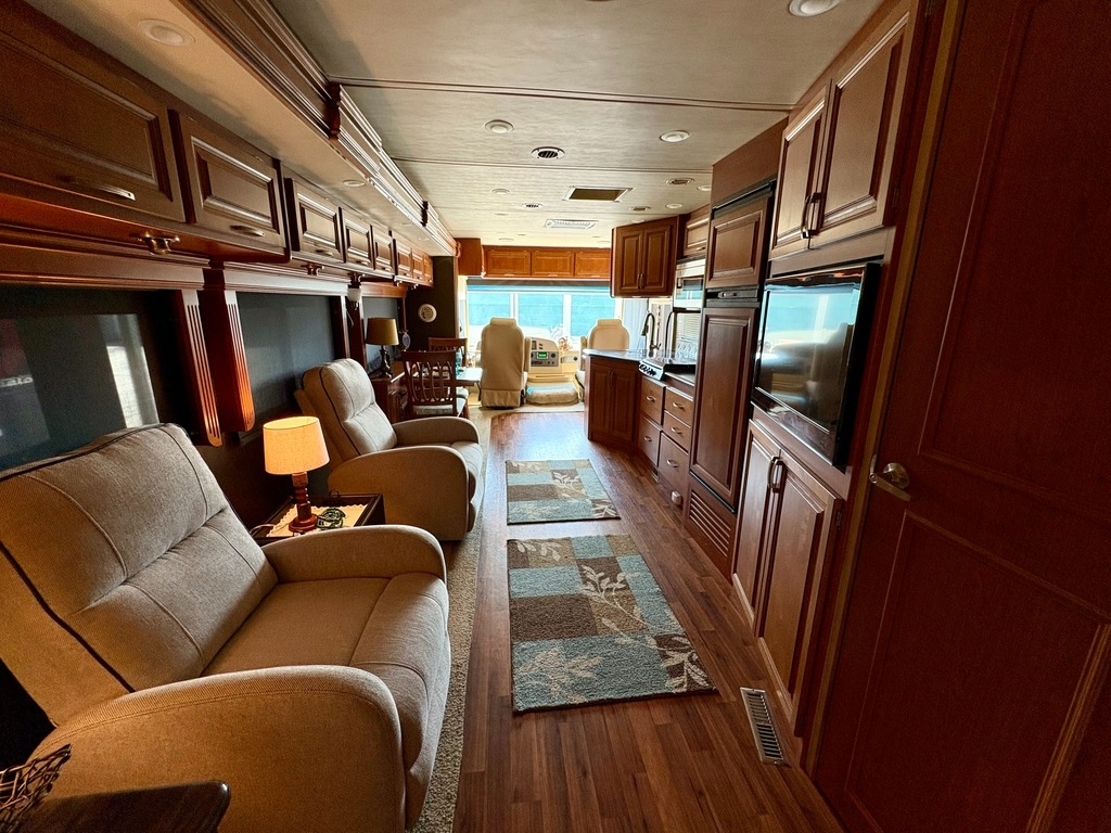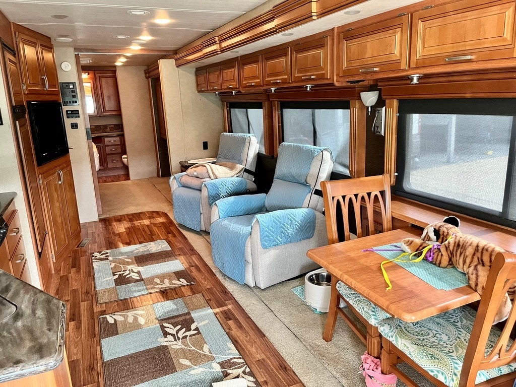 “This 2012 Monaco Monarch 36SFD Class A RV is in great shape, having been stored under cover its entire life. With only 70,000 miles, it has been fully serviced and is ready for the next adventure. The RV comes equipped with a new microwave/convection oven and a refrigerator that is just two years old. The tires are also in excellent condition, being only three years old. Please note that the Diamond Shield was removed due to molding issues, but this doesn’t take away from the overall quality of the RV. It also includes a tow bar and an RV GPS for added convenience. For those interested in a complete setup, a 2012 Honda CR-V XL with 92,000 miles is available for an additional cost ($65,000 for both the RV and tow vehicle package). This is a fantastic opportunity to own a well-maintained RV and a reliable tow vehicle for your travels.”
