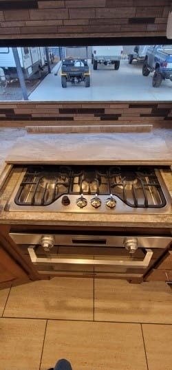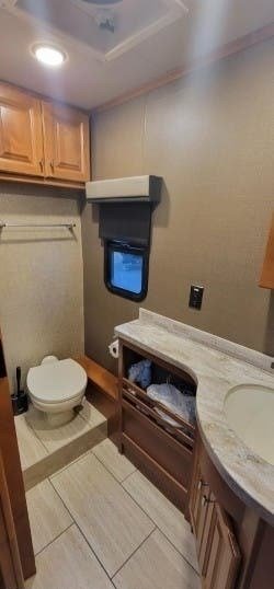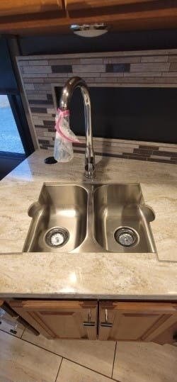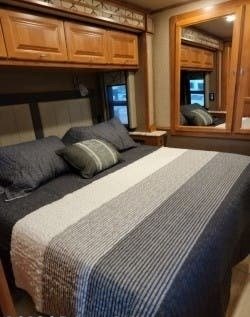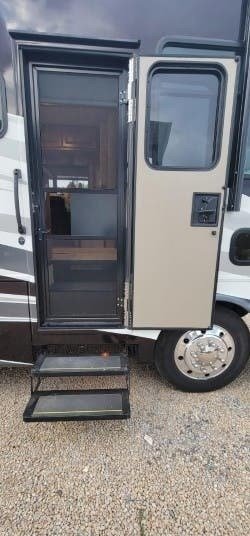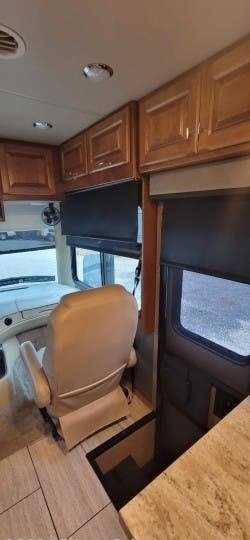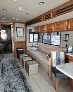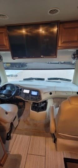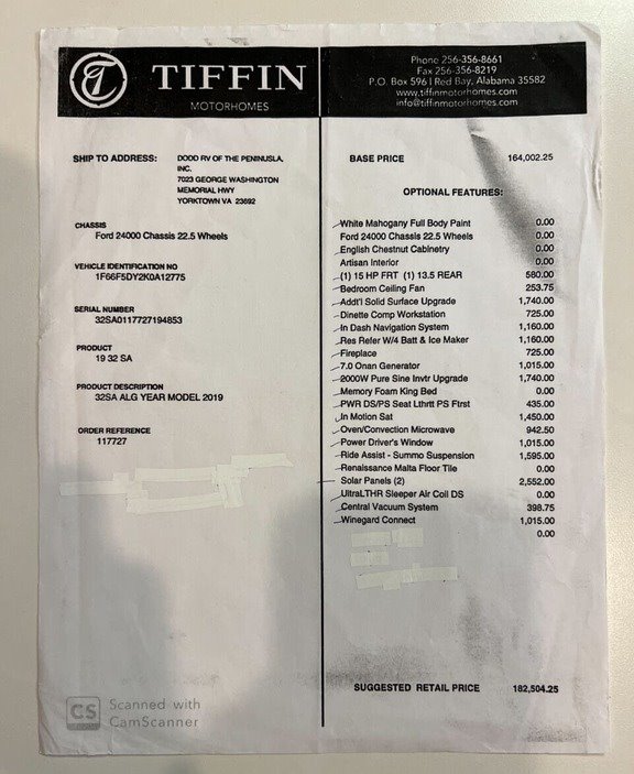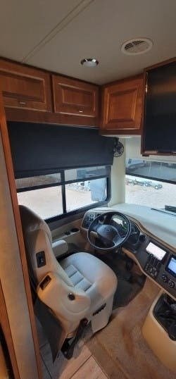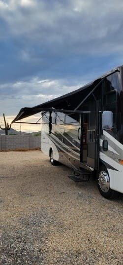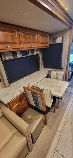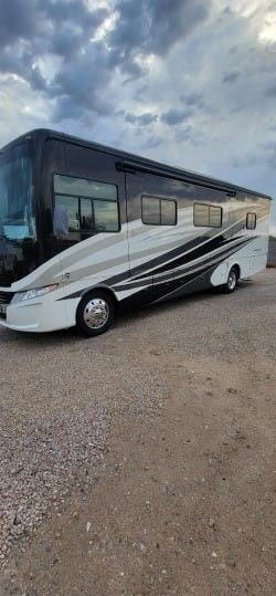 This Tiffin is powered by a 6.8L V10 engine and a 6-speed automatic transmission with 18,072 miles. The overall length is 34.25 feet and it comes equipped with 2 power retractable slide-outs, 1 power retractable awning, 2 A/C units, a generator, 2 solar panels, an exterior entertainment system, and plenty of room to sleep 6. This unit has been well-maintained.