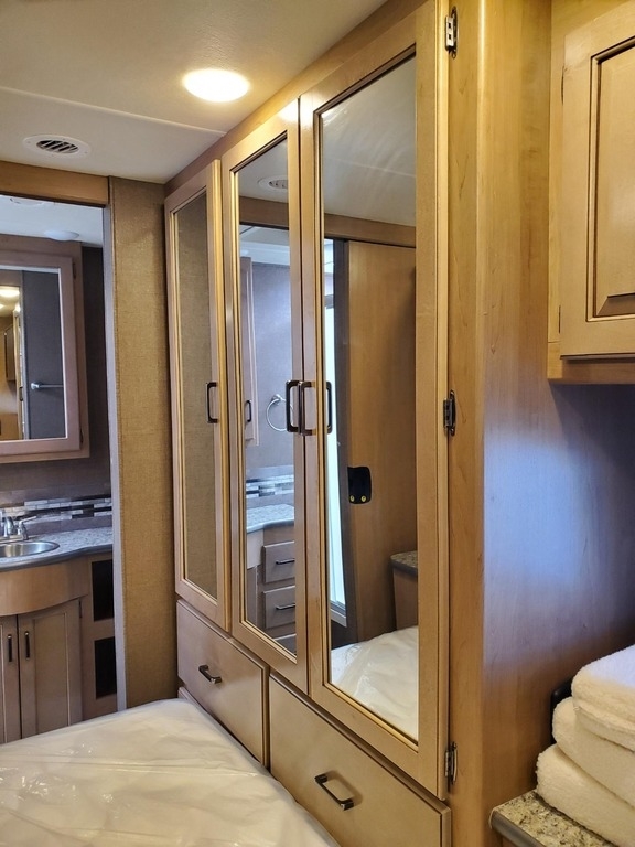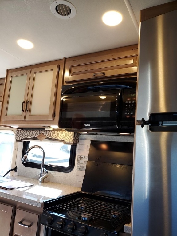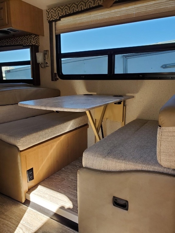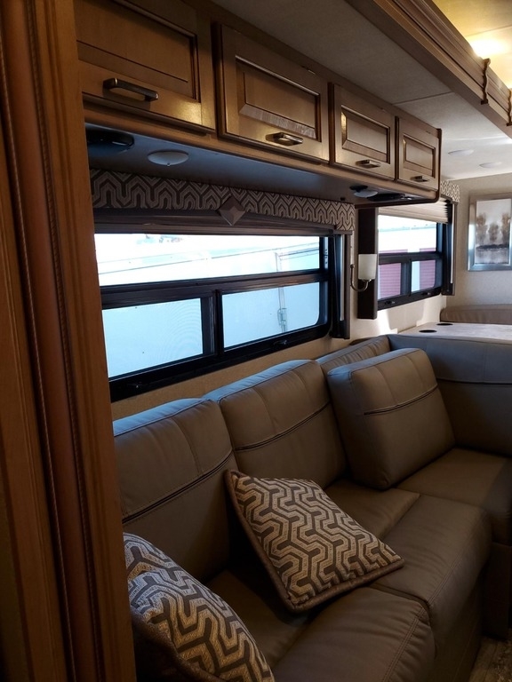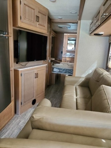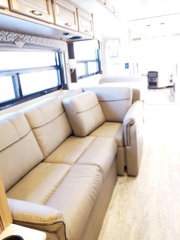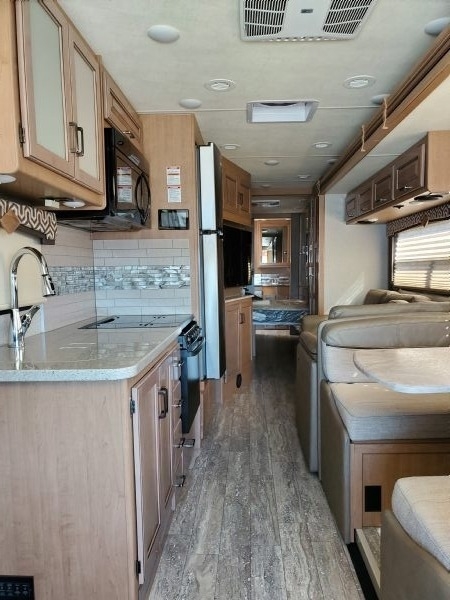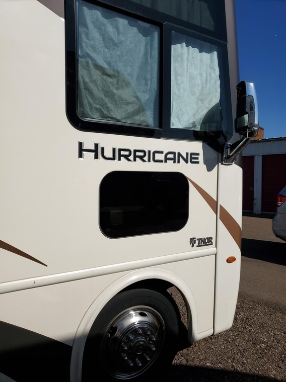 This 2019 Thor Motor Coach Hurricane 35M is powered by a Ford V10 Gas Engine combined paired with a 6-Speed Automatic Transmission, with 6,100 Miles. The overall length is 36 feet and comes equipped with an 8K Generator, 2 Slide Outs, 1 Awning, 2 A/C units with Ducted Air and plenty of room to sleep 8. This is a great unit in which to travel the country or live in full time.