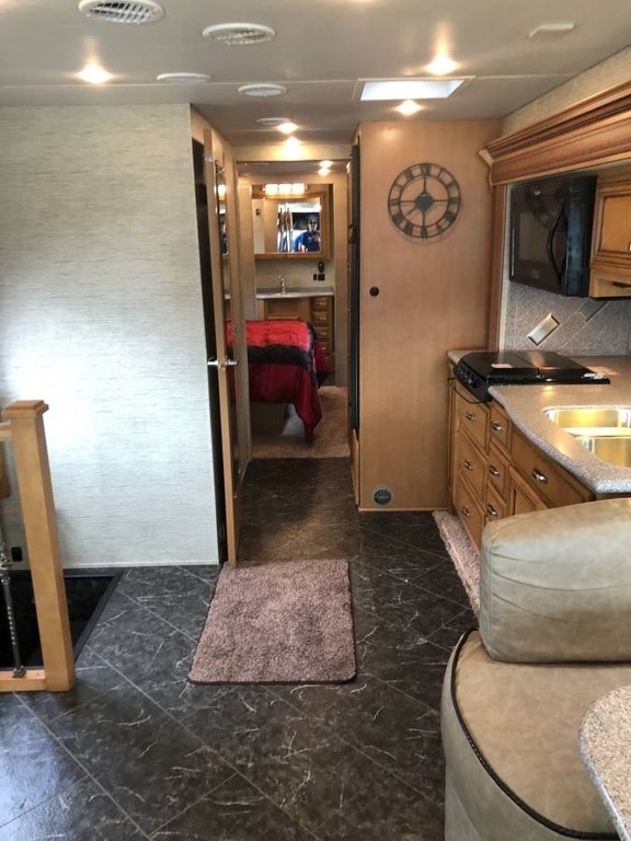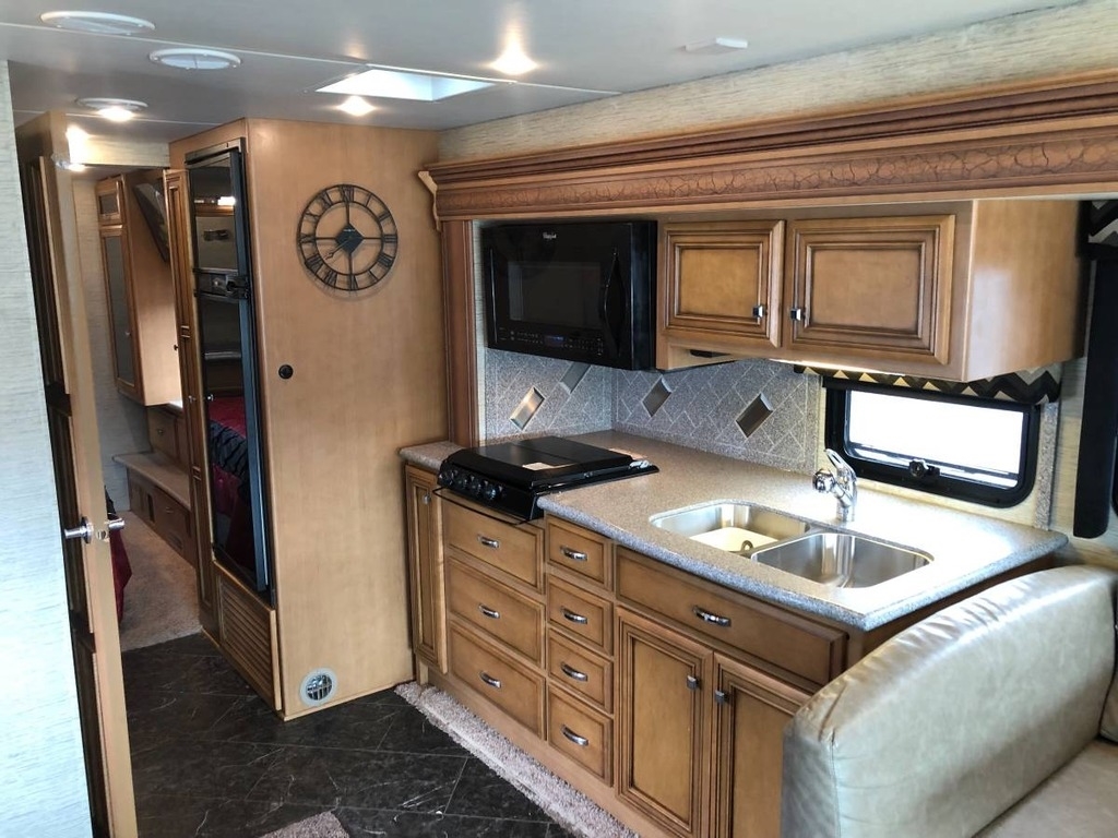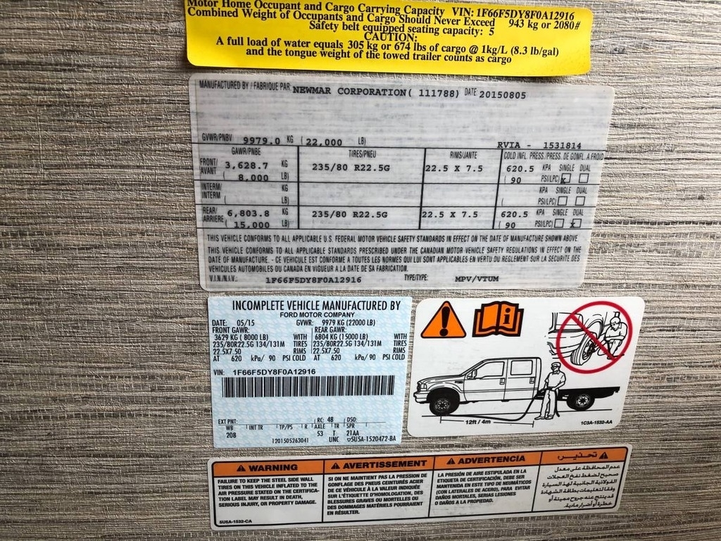 This is 2016 Newmar is powered by a 6.8L V10 362 HP Gas Engine driven with a Torqshift 5-Speed Automatic Transmission with Overdrive on a Ford F-Series Super Duty Chassis with only 21,750 Miles. The overall length is 34 feet and comes equipped with 1 and 1 Half Bathrooms, an Onan 5.5kW generator, 3 Slide Outs with Awnings, and 2 15,000 BTU Roof A/Cs with Heat featuring plenty of room to sleep 6. This is a non-smoking RV and there has not been any accidents or water damage.