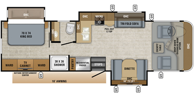 wardrobe storage, and its own TV for added convenience. The RV also includes a