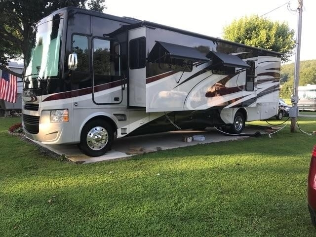 This 2016 Tiffin is powered by a Triton V10 Engine with 362 HP and combined with a 5-speed Automatic Transmission on a Ford Chassis, with 34,500 Miles. The overall length is 37 feet and comes equipped with an Onan 7KW Gas Generator, 2 Slide Outs, 3 Awnings, 2 A/C units and plenty of room to sleep 4.