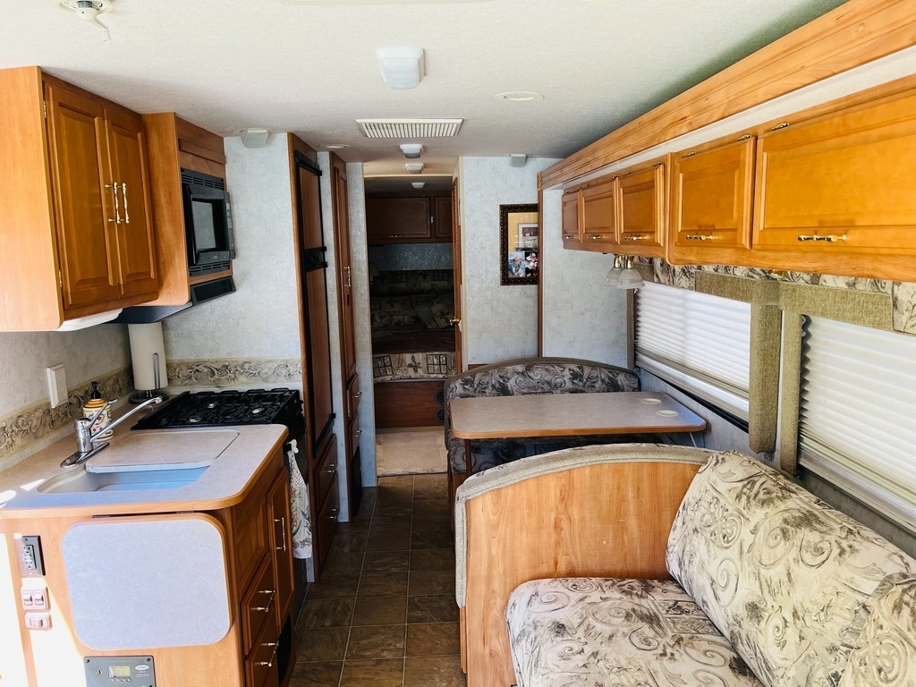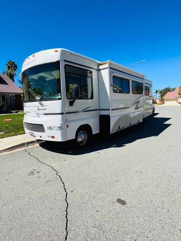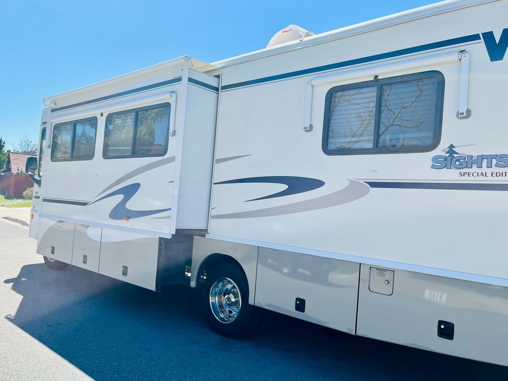 This ’05 Winnebago Sightseer is powered by a 6.8L Ford V10 Triton Gas Engine combined with a 4R100 4-speed Automatic Transmission with Overdrive on a Ford Chassis, with 44,000 Miles. The overall length is 30.10 feet and comes equipped with an 5000 Onan Gas Generator, 1 Slide Out, 1 Awning, 1 A/C unit, Heat, and plenty of room to sleep 6.