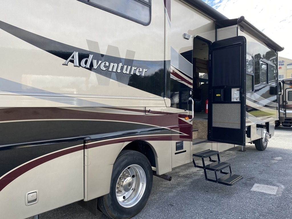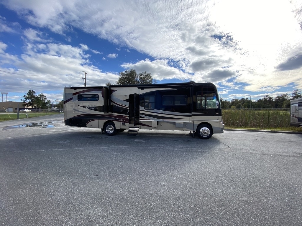 This 2010 Winnebago Adventurer is powered by a Vortec V8 340HP Engine combined with an Allison 6-speed Automatic Transmission on a Workhorse W Series Chassis, with only 9,915 Miles! The overall length is 37 feet and comes equipped with a New Onan 5.5kW Generator, 3 Slide Outs, 3 Awnings, 2 A/C units and plenty of room to sleep 6.