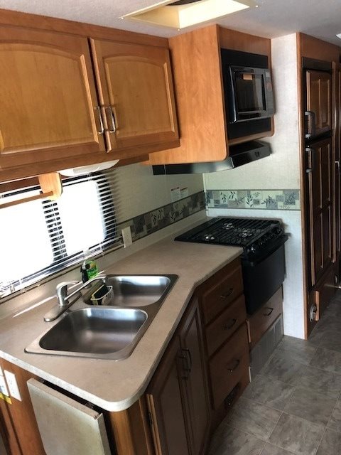 Triton Engine paired with an Automatic Transmission with 21,000 Miles. The overall length is 34 feet, has 2 Slide Outs,