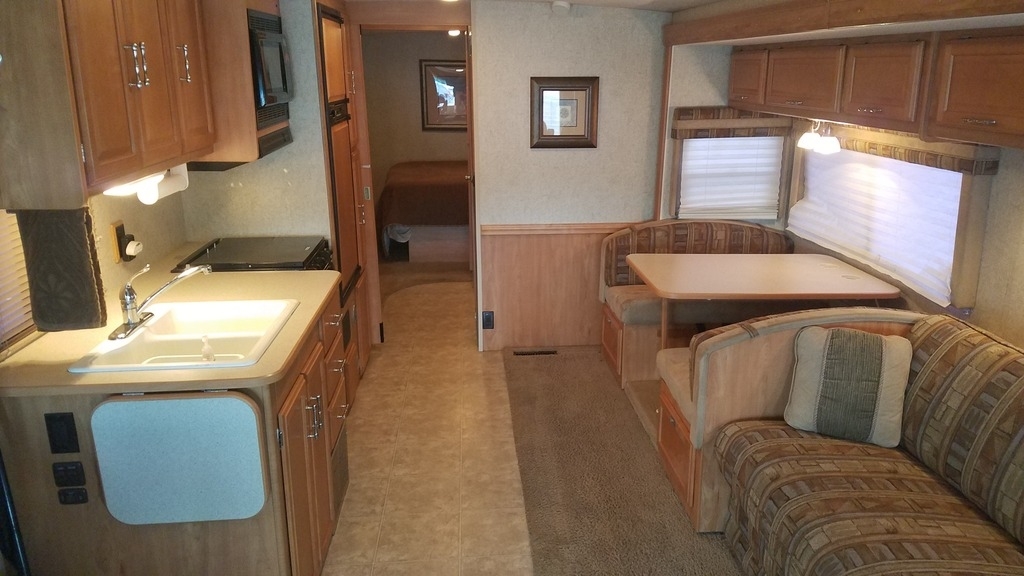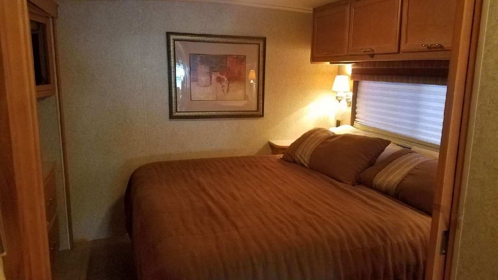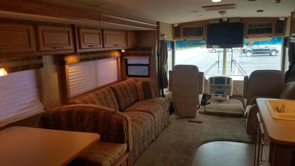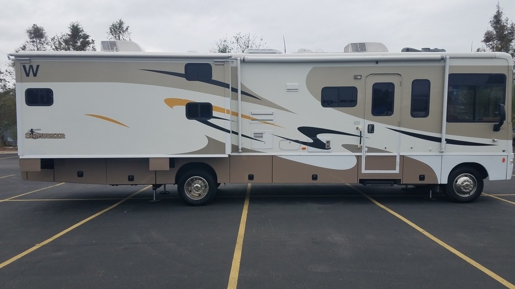 This 35’ Winnebago is powered by a Ford 6.8L V10 gas engine and is paired with an automatic transmission. It has a King size bed, has 2 Slide Outs, 1 Awning, and sleeps 6. This is a non-smoking RV and there has not been any accidents.