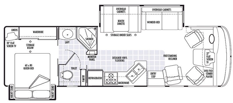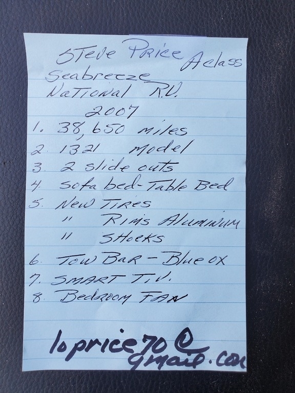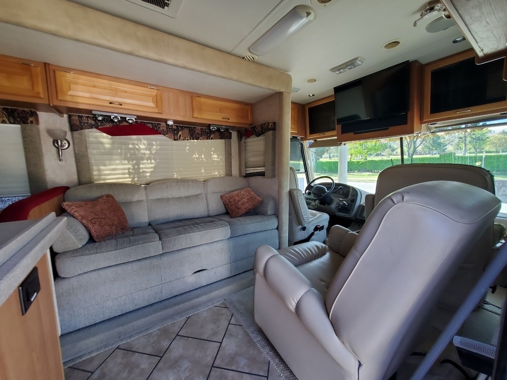 This 2007 National Sea Breeze 1321 is powered by a Ford Triton V-10 6.8L 362HP Gas Engine combined with a 5-speed Ford Torq-Shift Automatic Transmission on a Ford Super Duty F-53 Chassis, with 38,650 Miles. The overall length is 33 feet and comes equipped with an 5.5kW Gas Generator, 2 Slide Outs, 1 Awning, 2 A/C units and plenty of room to sleep 6. This is a non-smoking RV and there have not been any accidents or water damage.