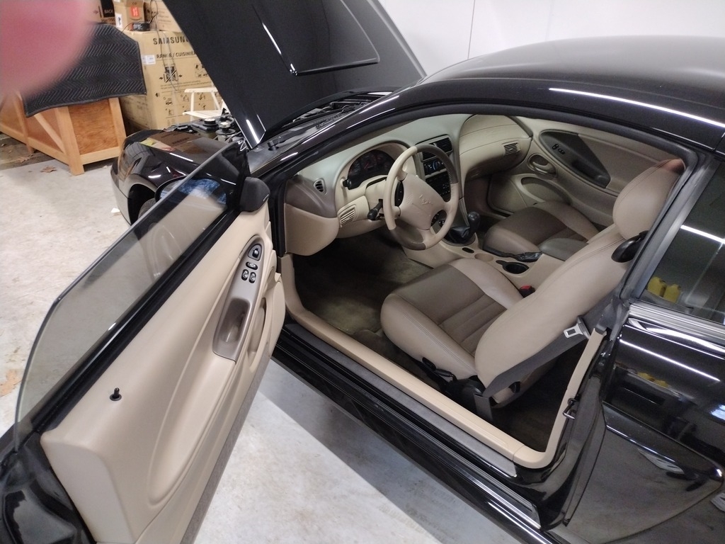 This 2003 Centenial Edition Mustang GT Deluxe (1 of 717) Is Powered by A 4.6L V8 Engine with A 5 Speed Manual Transmission With Only 24,320 Miles. This Centennial Edition – Comes with Leather-bound Album, Watch and Keychain. Shown in Tan Interior and Black Exterior, this GT is Ready to go!