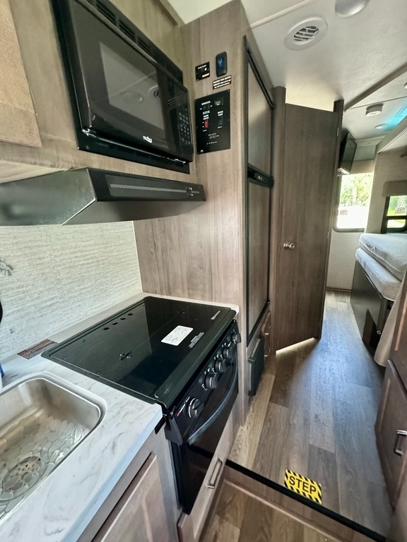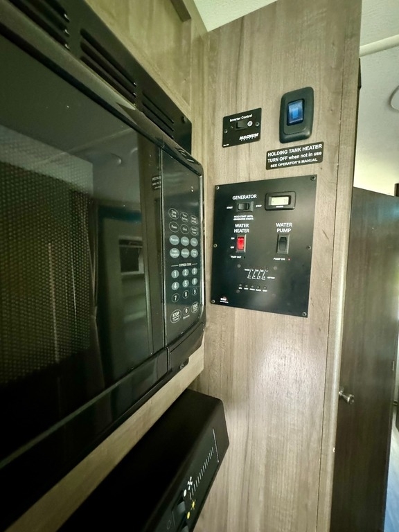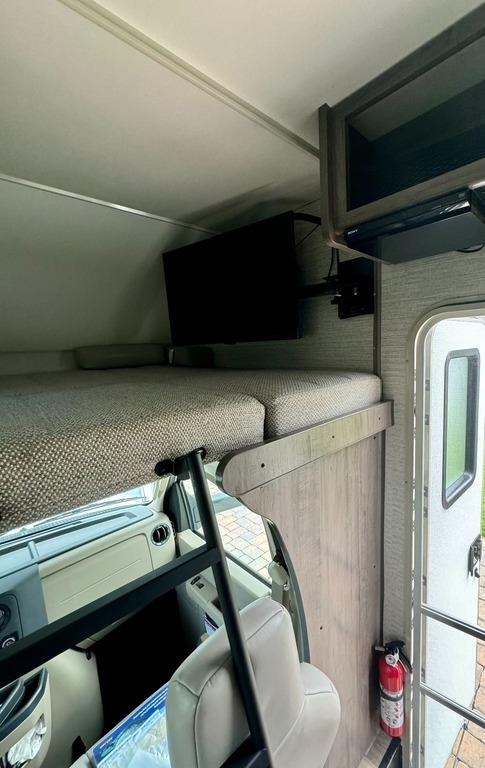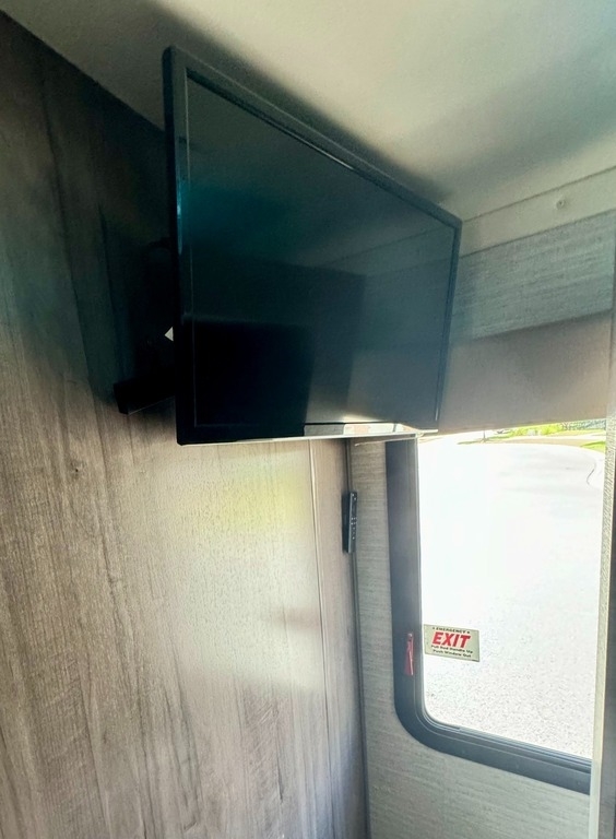comfortable trip, including a refrigerator, stove, microwave, and TV. The