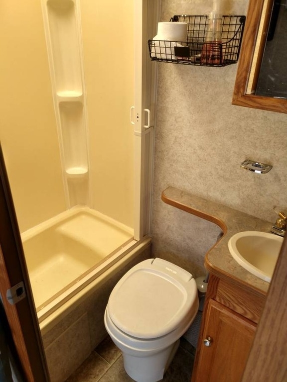 Sofa, dinette beds, tub shower, convection microwave, large fridge, generator, back up camera. Everything works great.