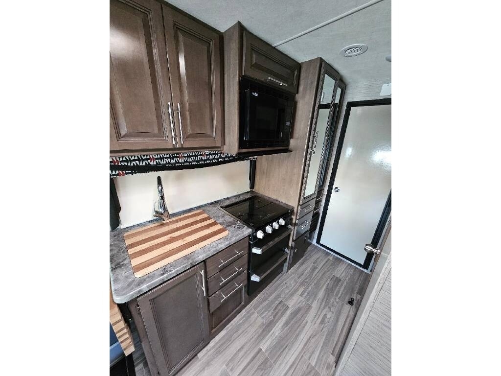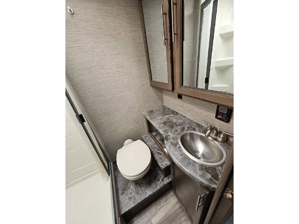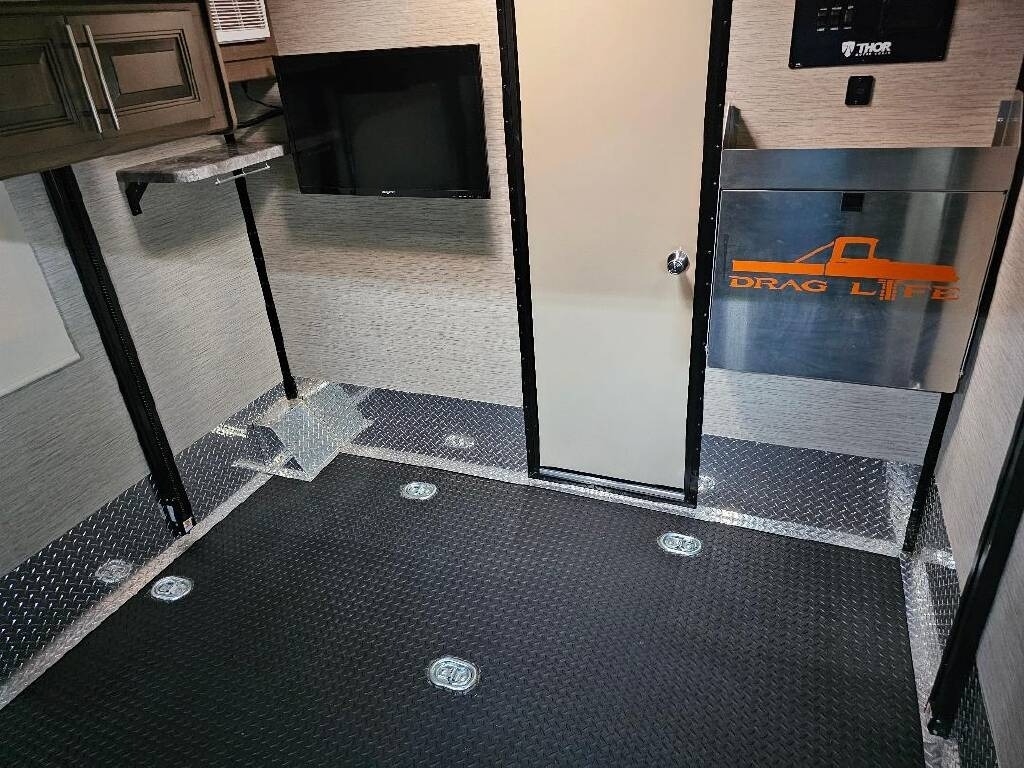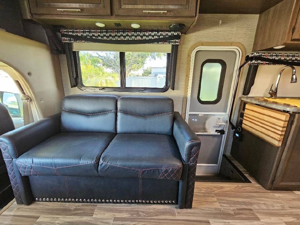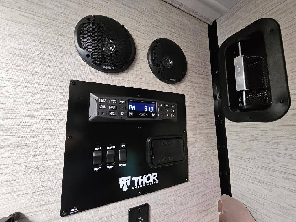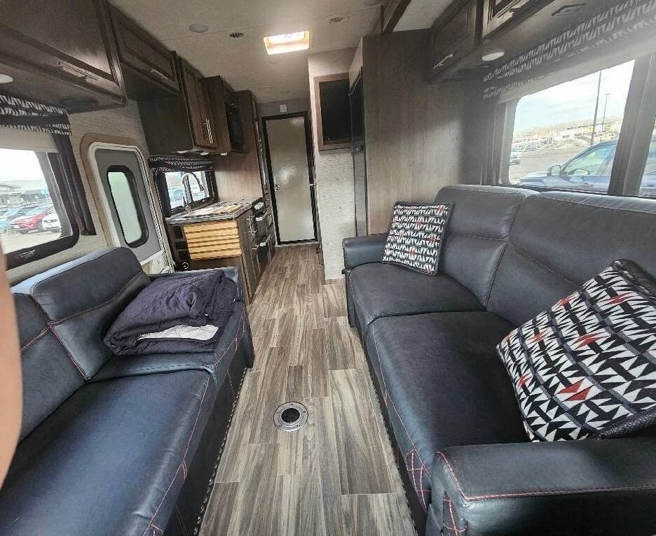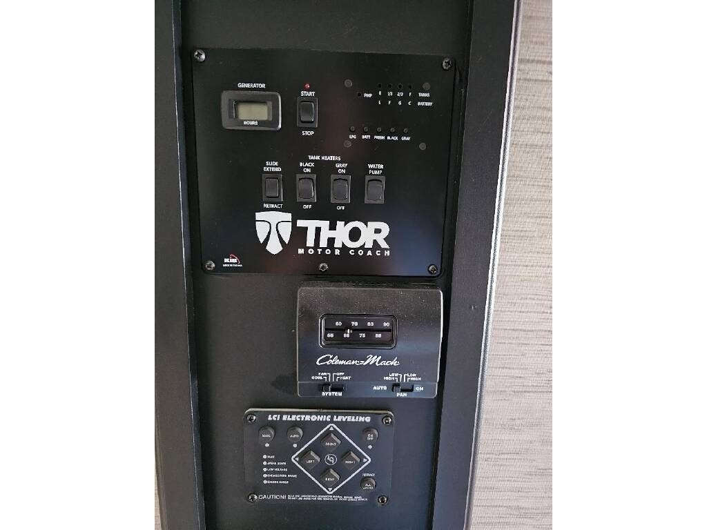 This Thor is powered by a 7.3L V8 engine and a TorqShift 6-speed Automatic transmission with 10,840 miles. The overall length is 31’ and it comes equipped with 1 slide-out, 2 power awnings, 2 A/C units, a generator, solar panels, an 8’ Garage, and plenty of room to sleep 8. This unit has been well-maintained.