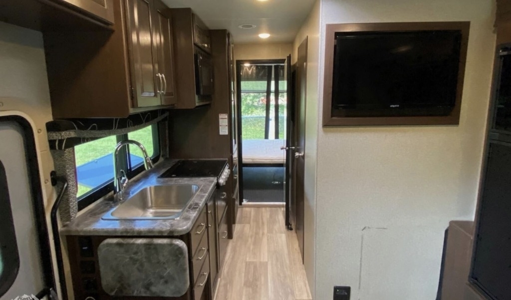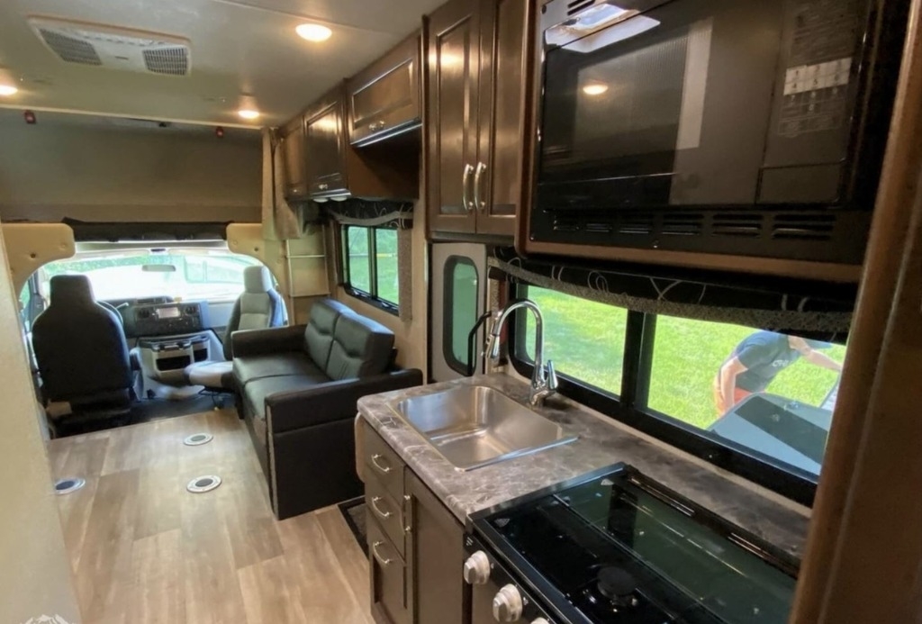 as Ford E-450 chassis. This motorhome has approximately 14,000 miles. Large