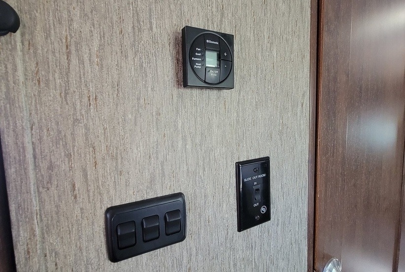 equipped with 2 power-retractable slide-outs, an 11-foot power awning, 1 A/C