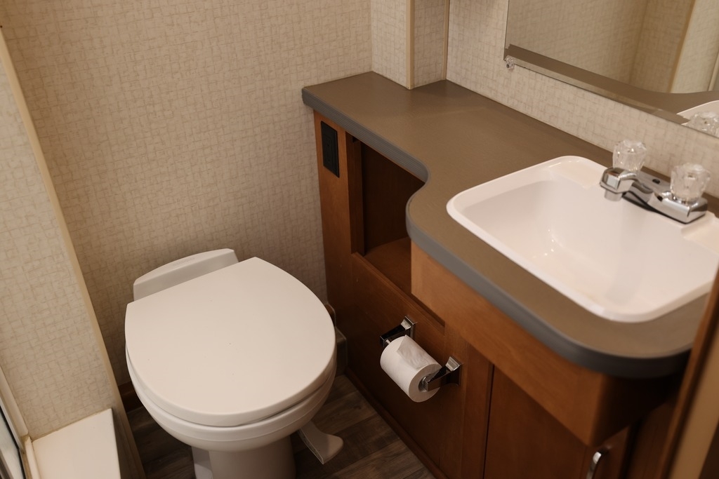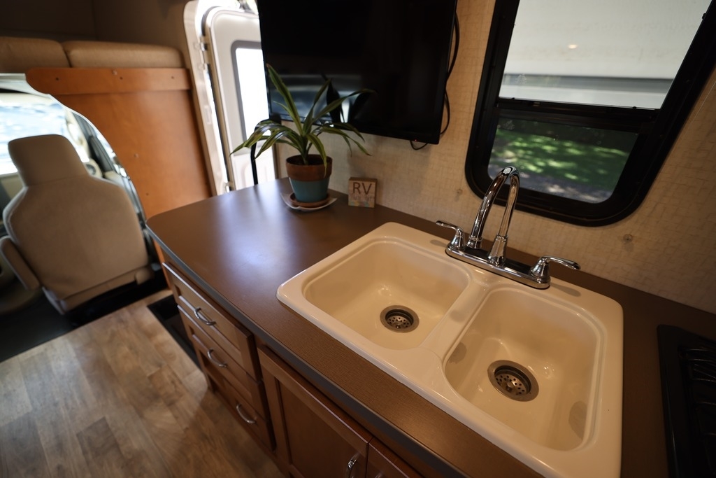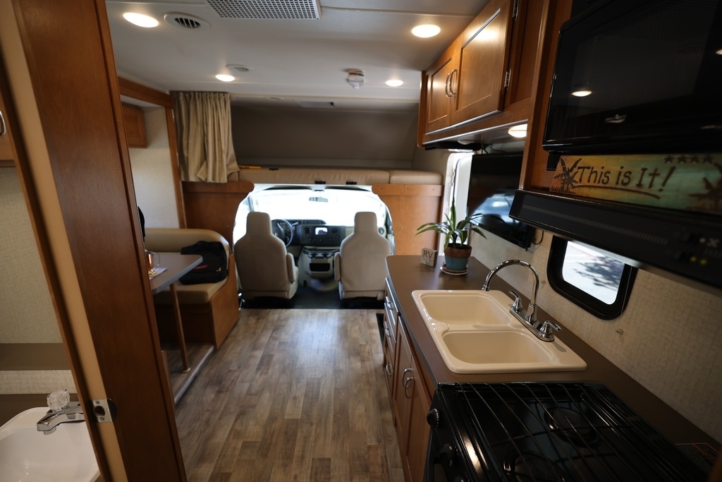 people comfortably. This motorhome is powered by a 305 HP Triton V10 gasoline