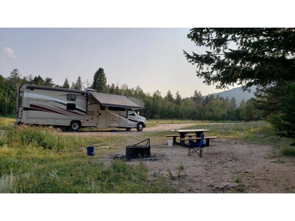 This Coachmen is powered by a 6.8L V10 engine and a 6-speed automatic transmission with 90,370 miles. The overall length is 32.92 feet and it comes equipped with 2 power retractable slide-outs, 1 power retractable awning, 1 A/C unit, bunk beds, and plenty of room to sleep 8.
