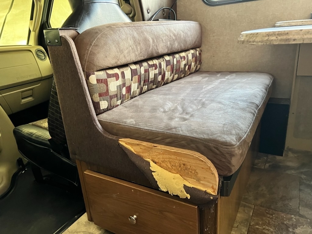 “This 2017 Coachmen Leprechaun 310BH Class C RV is priced for an as-is sale, offering a great opportunity for those looking for an RV at a competitive price. While the RV is fully functional, there are a few items that may require attention, which we are happy to address. These items include recharging the A/C system, replacing the tires soon, and repairing the upholstery on the kitchen dinette. The shower pan has a crack on the threshold (entrance step), and the windshield has chips and a crack. Additionally, the weather stripping between the cab and cab-over bunk needs attention. The drawer catches need to be upgraded with new hardware for better durability. Overall, this RV is a great option for those who want to invest a little time and care into making it their own.”