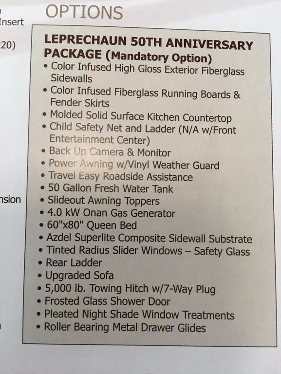 Sellers Notes: This is the 50th Anniversary Package of the Leprechaun and includes many extras and options, lists of which have been included with photos of the RV. There are also multiple videos of the exterior and interior of RV that are available upon request.