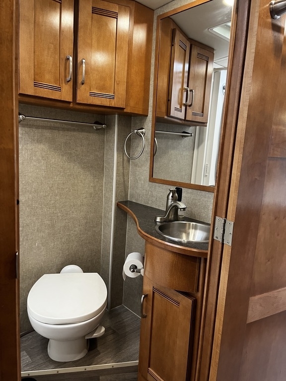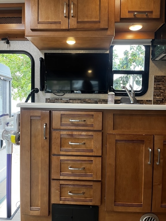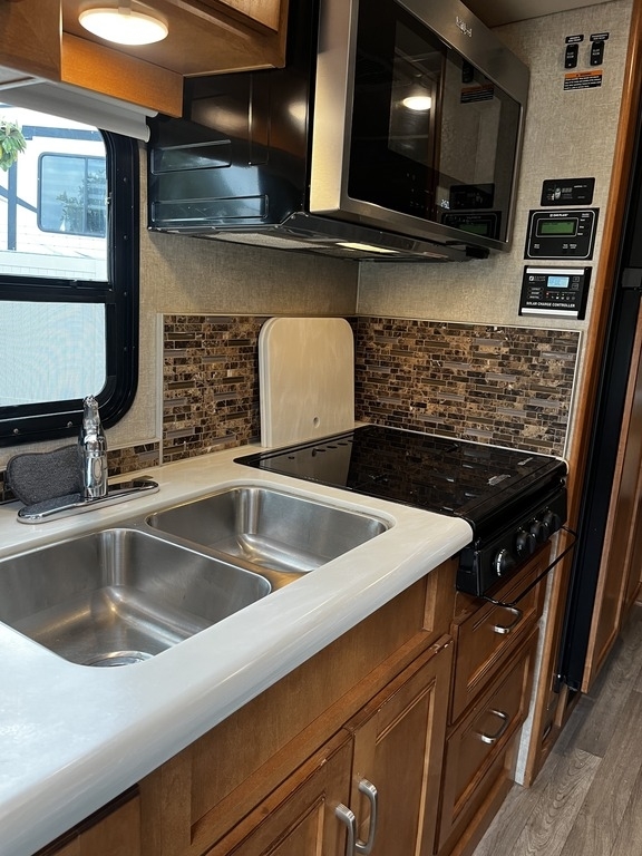 This 2019 Winnebago Cambria 27K is powered by a 6.8L V10 SEPI Triton engine and a 6-spd automatic transmission with 15,237 miles. Equipped with 2 slide-outs, 1 awning, and 1 air conditioner, at 29 feet, there is plenty of room to sleep 3. This is a non-pet/non-smoking RV and there have not been any accidents or water damage.