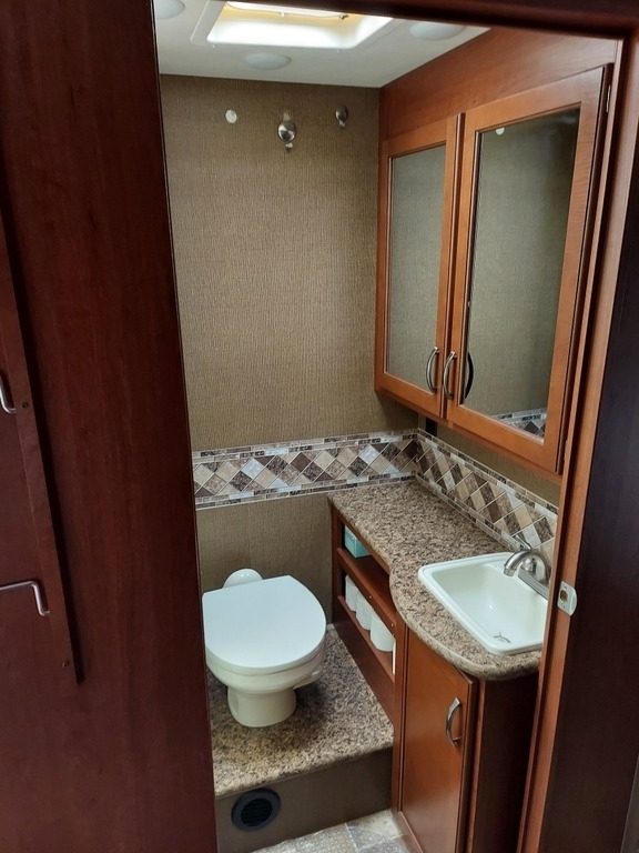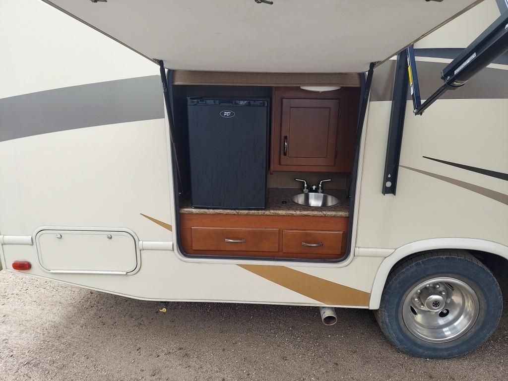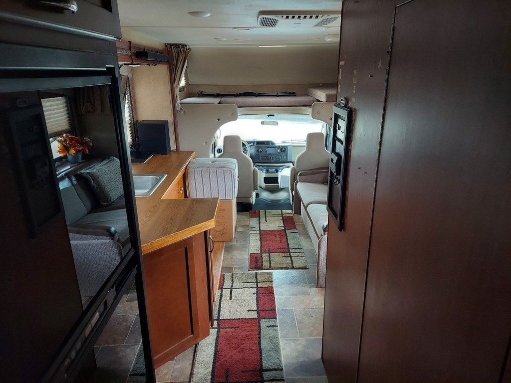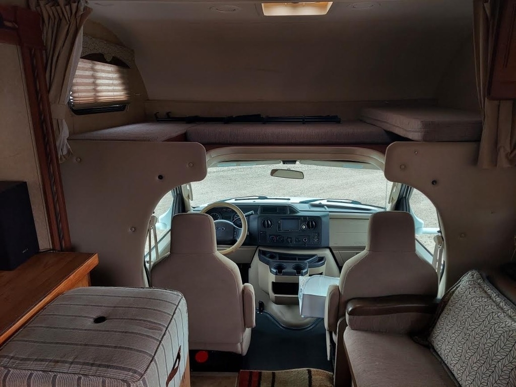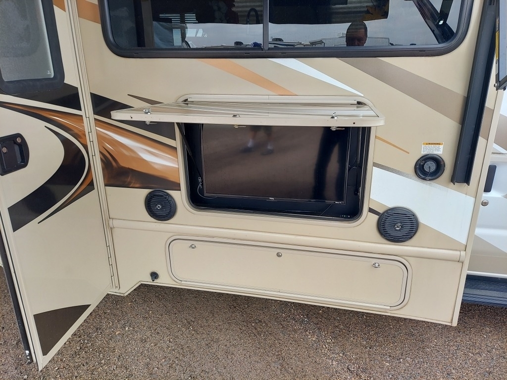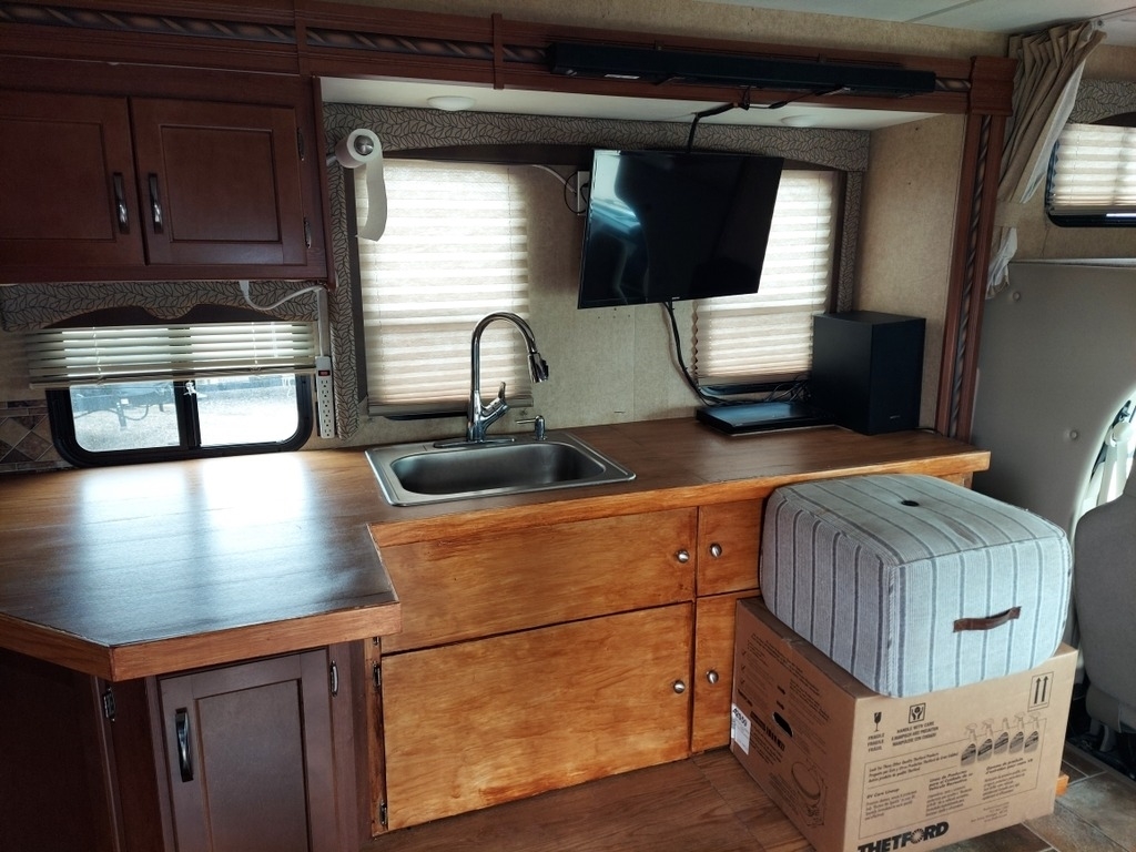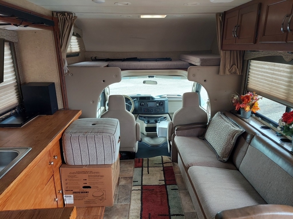 Gently used Class C motorhome is priced to sell fast with low mileage and with modern upgrades for convenience. Generator - Onan 4,000: has 400 hrs., Automatic awning, back up camera, Chrome brush bar, New Inverter, New slide control panel, New Ford battery, 2 new storage batteries, new water pump, new toilet. New electrical relay box, new shower head, Trailer hitch, Chrome tail pipe, all wheel alignment done, new air filter, 160-Watt solar panel: installed on top, Portable solar panel for easy use, Winegard 360 Wi-Fi system, Samsung smart Ultra HDTV, Surround sound system, and remodeled interior with full sized sink and faucet.