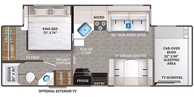 This Chateau is powered by a 7.3L V8 engine and a 6-speed automatic transmission with only 1,800 miles. The overall length is 29.08 feet and comes equipped with 1 power retractable slide-out, 1 power retractable awning w/LED Lighting, 2 A/C units, a generator, and room to sleep up to 8. This unit has been well-maintained.