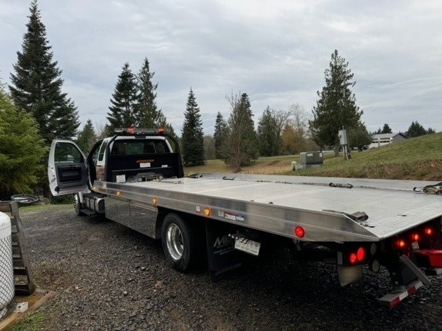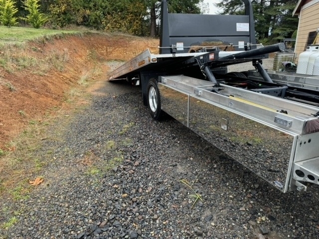 gets roughly 11.3MPG with 12k lbs on the deck. It has a 65-gallon aluminum fuel