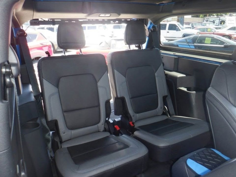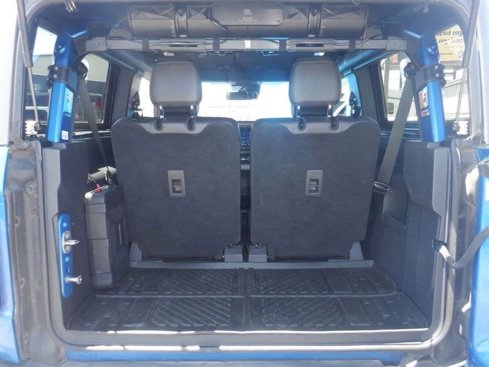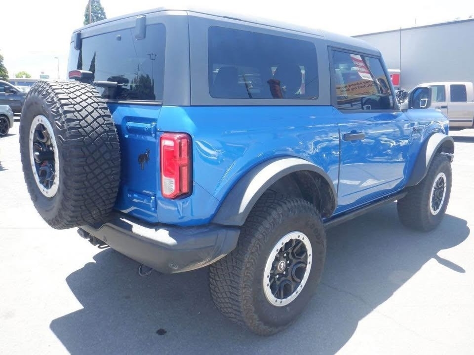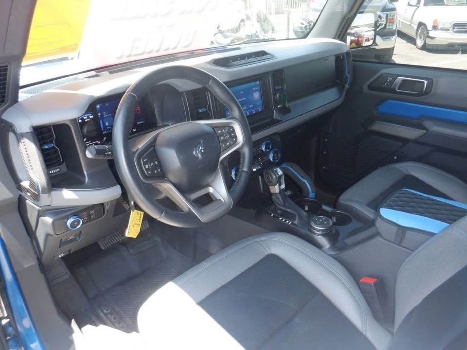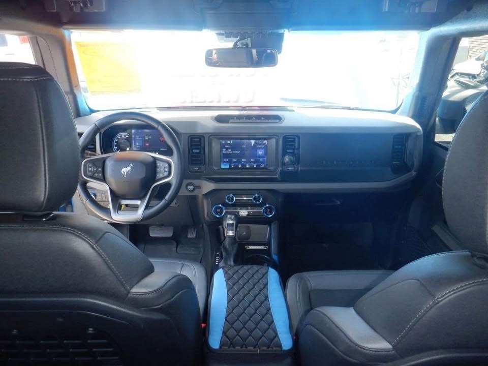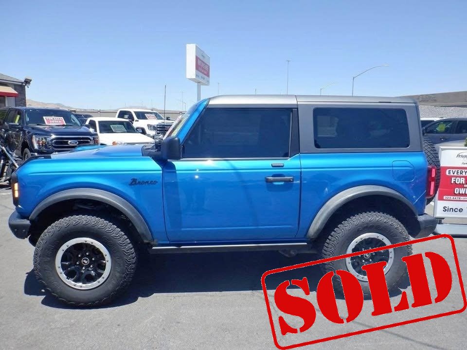 “For sale is a 2021 Ford Bronco, 2-door, 4WD with an automatic transmission and a powerful 2.7L EcoBoost twin-turbo V6 engine. This vehicle comes equipped with the Sasquatch package and off-road package, making it a top performer on and off the trail. It features a striking Velocity Blue exterior and a stylish leather interior with blue trim. The Bronco has low miles and has been well-maintained, with all tires recently balanced and rotated and oil changes up to date. Additional features include a tow package, LED fog lights, subwoofer with sound bar, all-weather mats, rock crawler lights, rock slider rails, two LED spot lights, automatic headlights, heated seats, and dual-zone climate control. This is a great ride, but it’s no longer needed. Clean title in hand and ready to sell.”