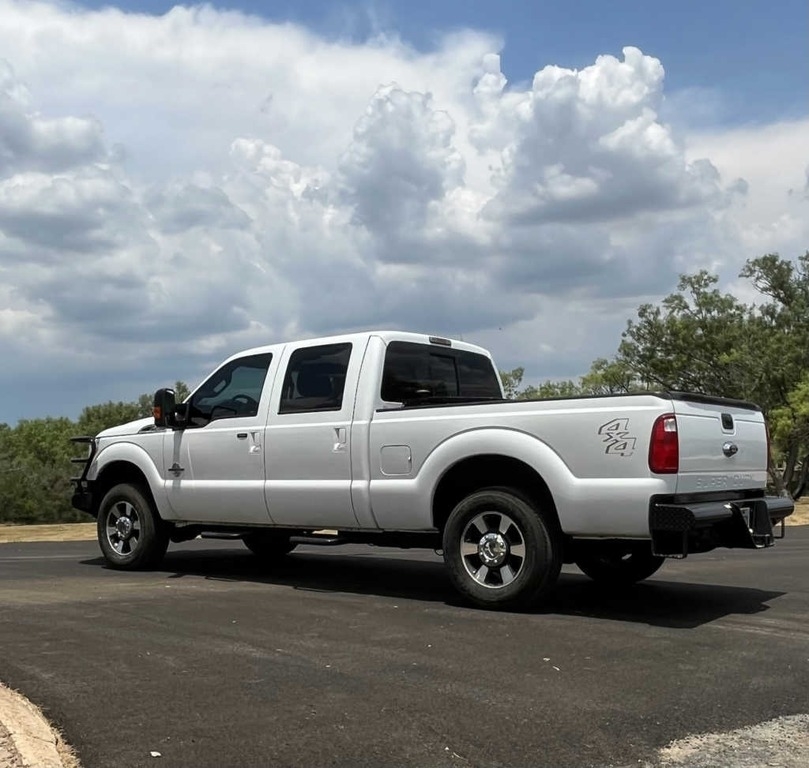 2013 F-250 Lariat located in Pearsall, Tx. equipped with South Texas Outfitter replacement bumpers on front and back including 4 doorsteps. Goose neck hitch included with a combo fuel/toolbox setup. New Continental tires with less than 700 miles, Pipe Bumper & Bed Box.