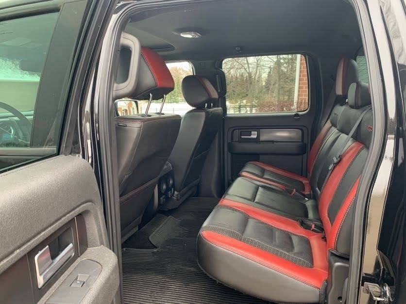 This 2014 Ford F-150 SVT Raptor Is Powered by A 6.2L SOHC 16V 411HP V8 Engine, Paired with a 6 Speed Automatic Transmission. This 4WD Super Crew Has 63,827 Miles and is Shown in Black Exterior with Black and Red Leather Interior. Last year of the V8 Gen 1, This Truck is being sold by the 2nd owner, who bought it from his boss. Reason for Sale – Family is Expanding. Has been Stored in Garage and has Never been Off-Road.