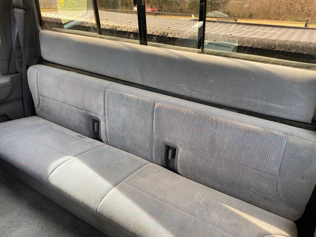 windows, tilt steering wheel, and a sliding rear window. The interior features captain’s