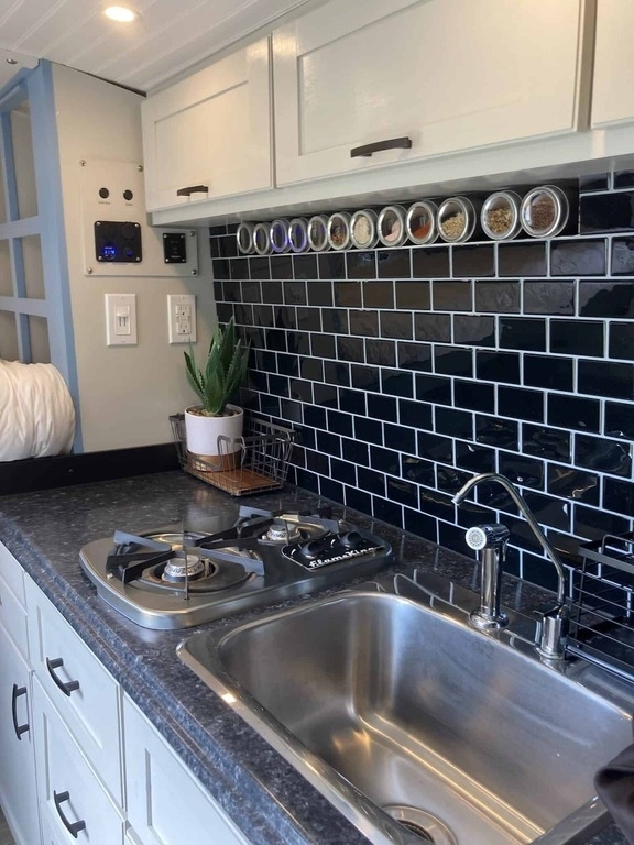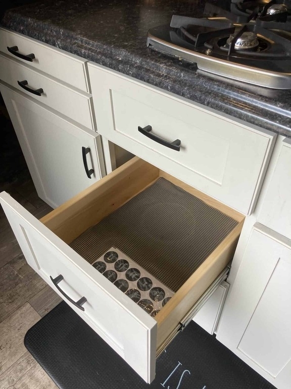 5″ gel mattress full-size, custom cabinets with slow close drawers, Natural gas,
