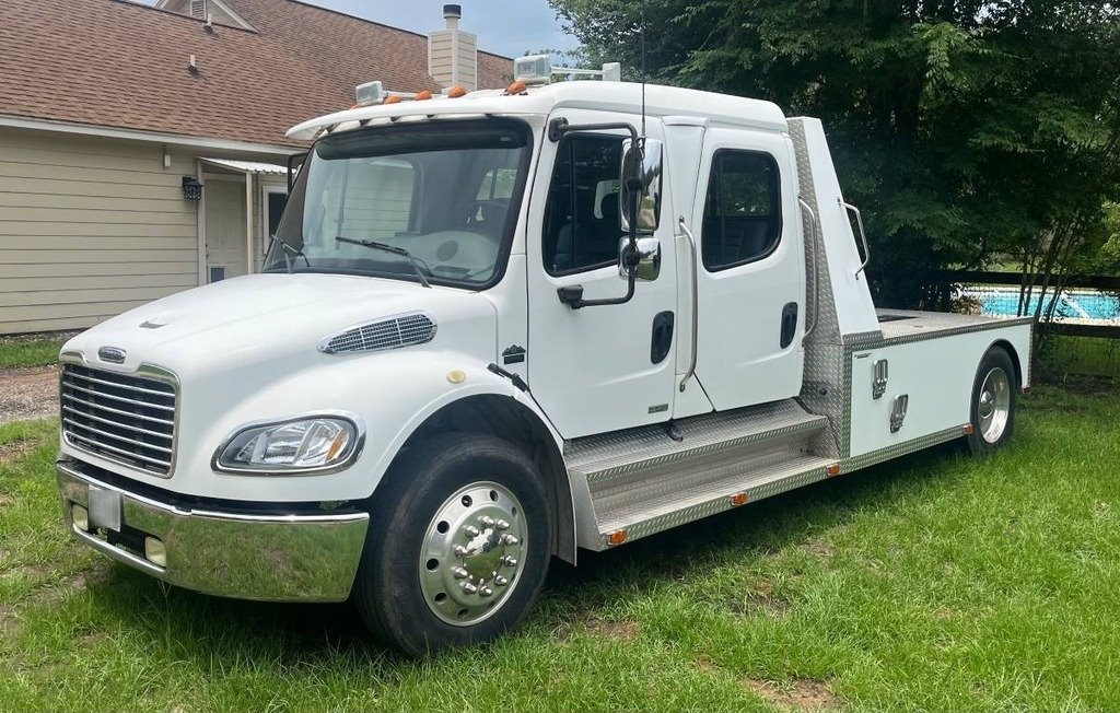 “2007 Freightliner M2 Business Class. Four-door, Mercedes diesel, 6-speed automatic, finished out by Mountain Master with plush interior, air ride seats, air brakes, and air horns. New sound system, amps, 3 MTX 10” subs with focal mids and highs, and blue tooth. The Stereo was installed professionally and cost $14k. The truck runs great, no issues. 75,650 miles. Does not require DEF fluid. Pulls like a champ; I used it to pull my 36’ power boat but sold it so the truck sits a lot. Has new batteries and excellent Michelin tires. Need to find somebody who will drive it more.”