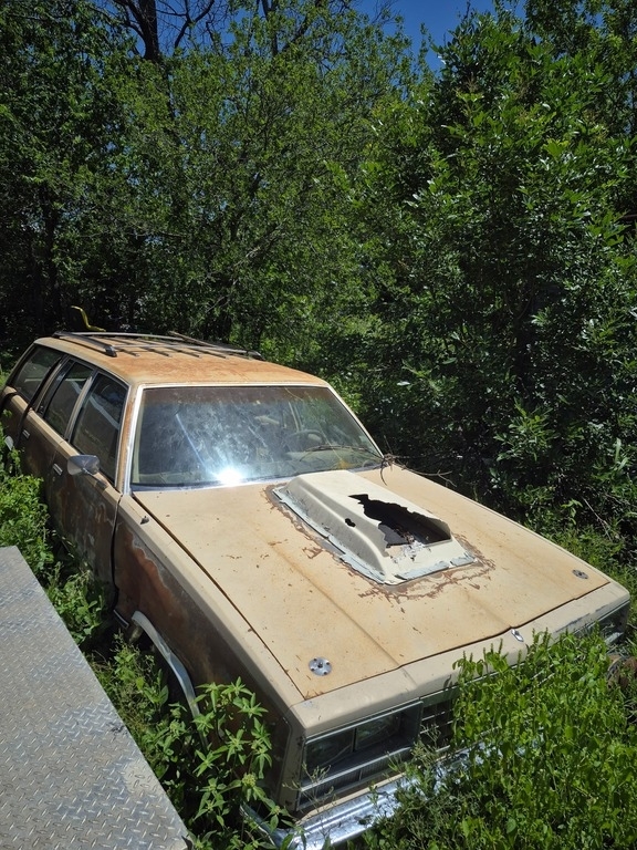 A true project car or parts vehicle with a solid frame and classic GM wagon bones.