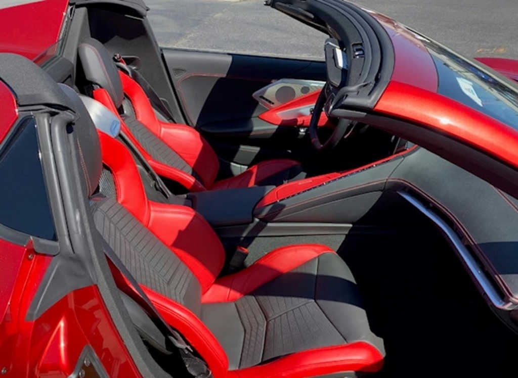 This 2022 Corvette Is Powered by A 6.2L Engine Paired with An Automatic 8 Speed Transmission and An Odometer Reading of Only 5200 Miles. The Exterior of The Corvette Is Red and Features a Custom Red/Black Interior.