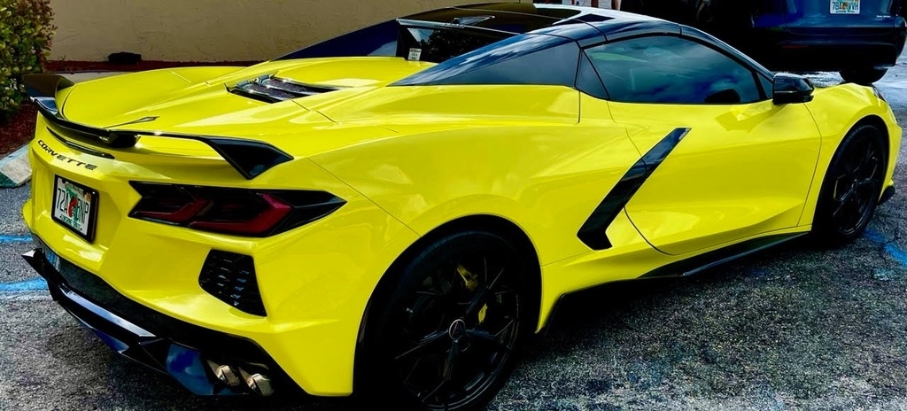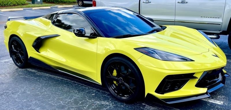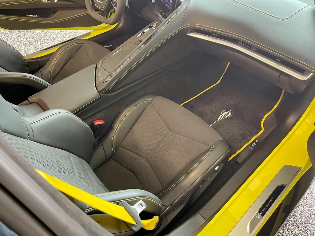 This 2022 Chevrolet Corvette Stingray is powered by a 6.2L V8 gasoline engine paired with an 8-speed manual transmission with 5,000 Miles. This Chevrolet Corvette Stingray is shown in Accelerate Yellow Metallic exterior and a Jet Black interior.