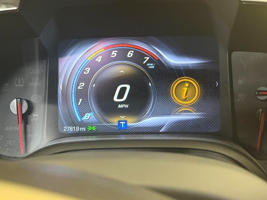 This Corvette is powered by a supercharged 6.2L V8 engine paired with an 8-speed automatic transmission. It has 27,819 miles and is shown with a Night Race Blue Metallic exterior and a gray leather interior. This vehicle has been garage-kept and well-maintained.