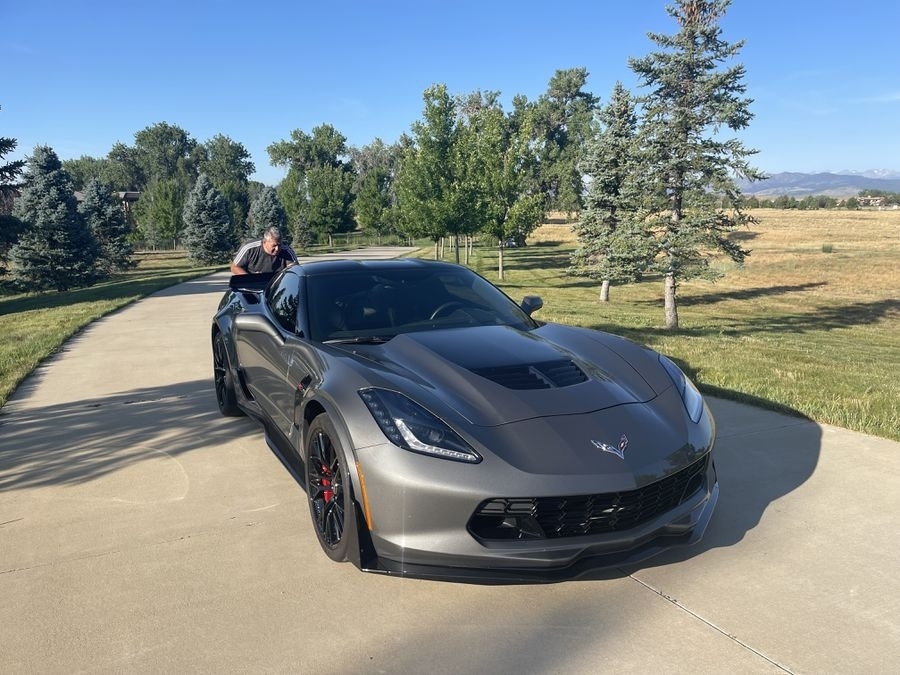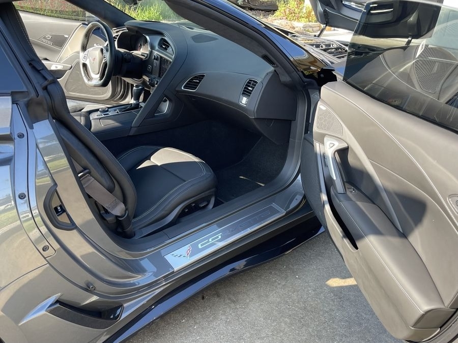 This 2015 Corvette Z06 is powered by a 6.2L V8 engine and an 8-spd automatic transmission with 5,667 original miles. Proudly shown with shark grey exterior paint with black leather interior.