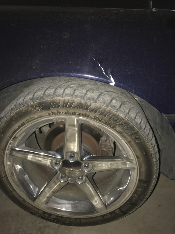 fiberglass is cracked above right rear wheel and has random paint flaking off.