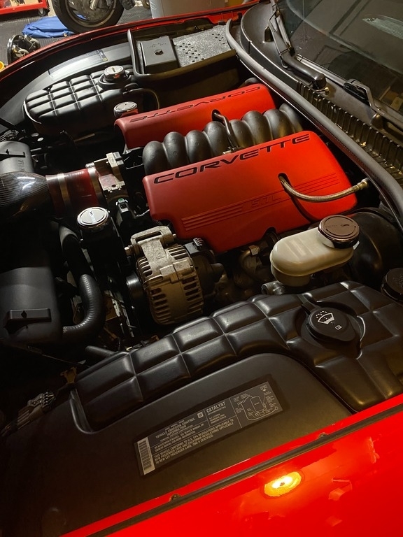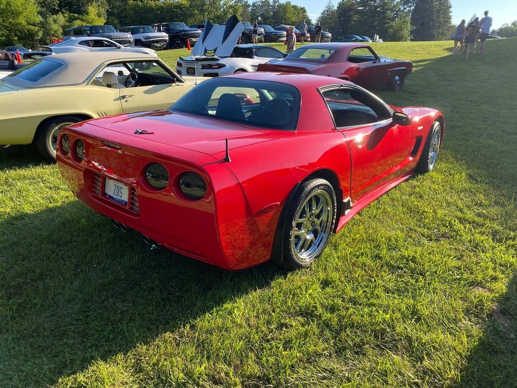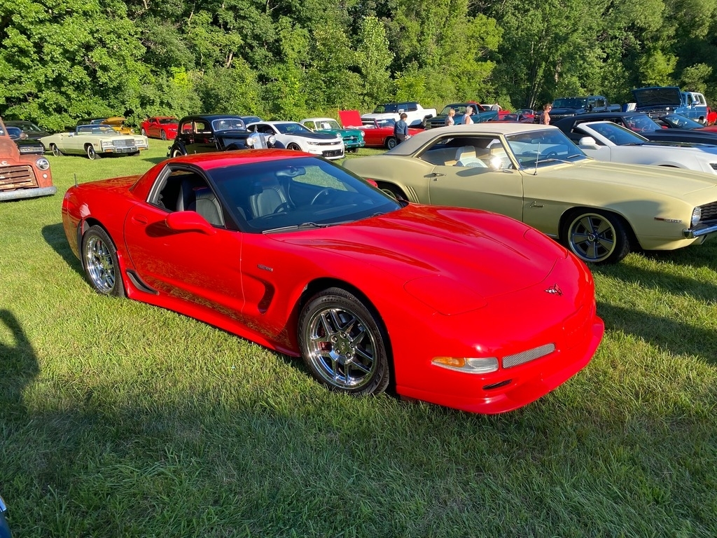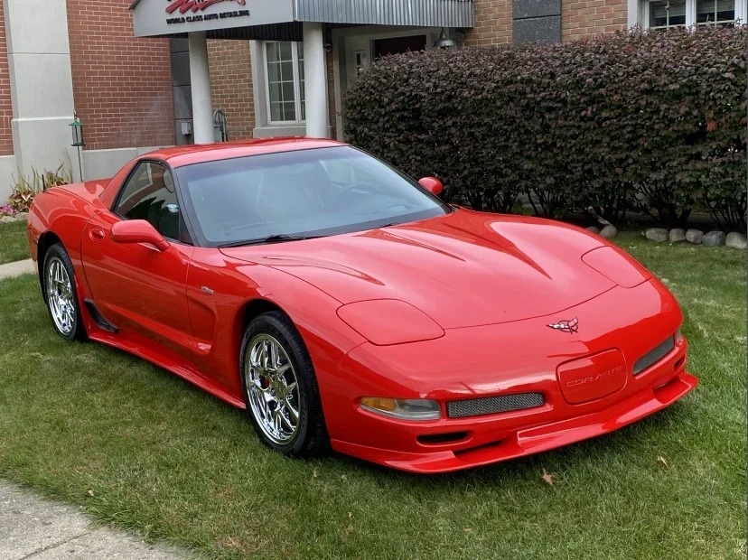 This 2004 Chevrolet Corvette Z06 Coupe is powered by an LS6 V8 405 hp engine and a 6-spd manual transmission with 20,225 original miles. Proudly shown with red exterior paint with black leather interior.