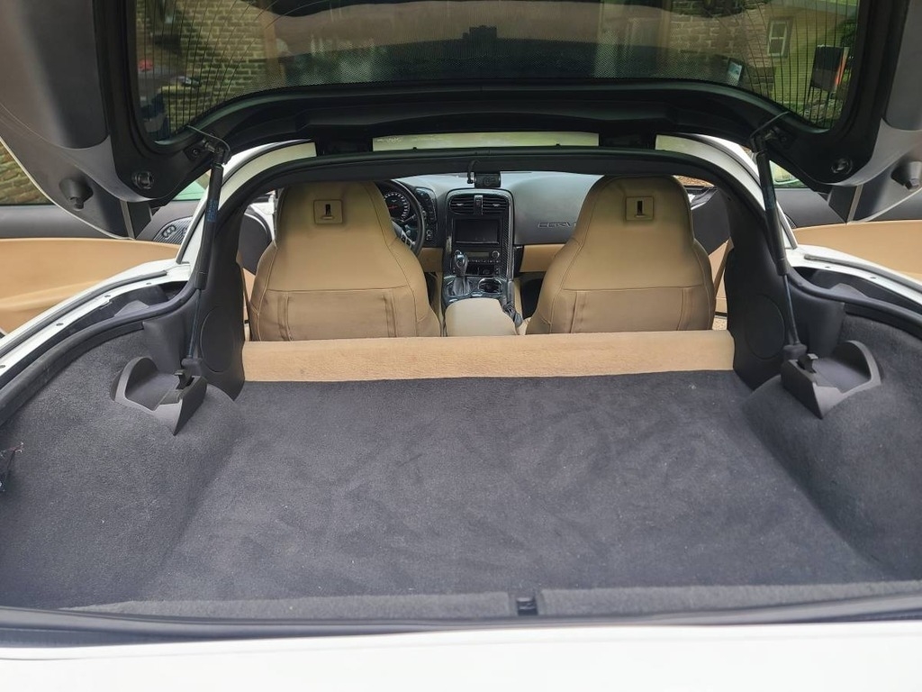 This Corvette is powered by a 6.2L V8 engine paired with a 6-speed automatic transmission. It has 46,700 miles and is shown with an Arctic White exterior and a Cashmere leather interior. This vehicle has been non-smoking, garage-kept, and well-maintained.