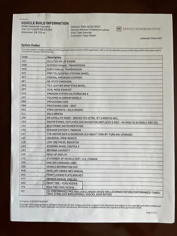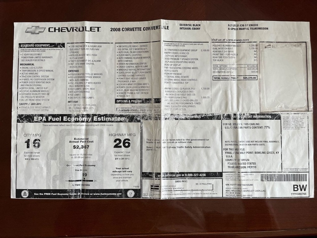 This 2008 Chevy Corvette 3LT Z51 is powered by a 6.2 L V8 430