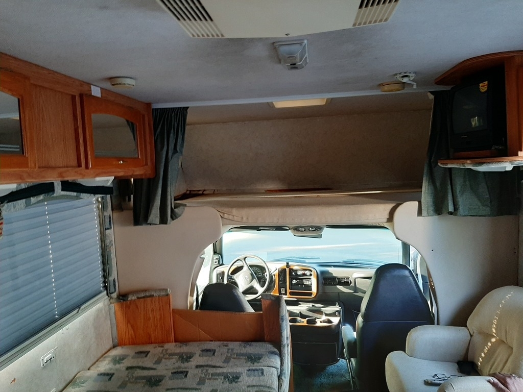 This 2002 Jayco Eagle is powered by a Triton 6.8L V10 Gasoline Engine combined with an Automatic Transmission on a Ford E450 Chassis, with 24,181 Miles. The overall length is 31 feet and comes equipped with a Gasoline Generator, 1 Awning, 1 A/C unit, and plenty of room to sleep 4.
