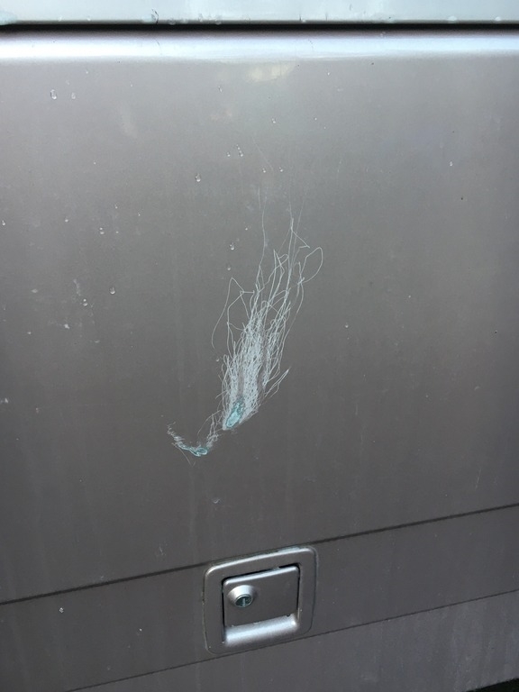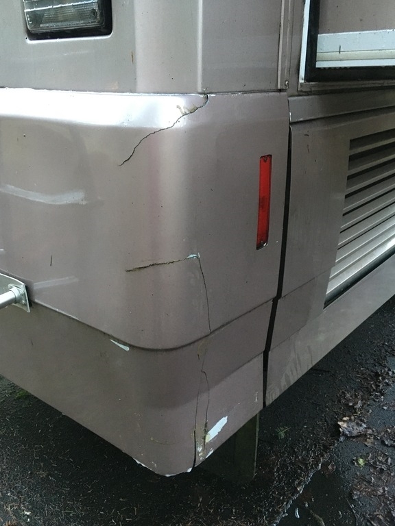 Exterior damage on the back driver side. (See Photos).