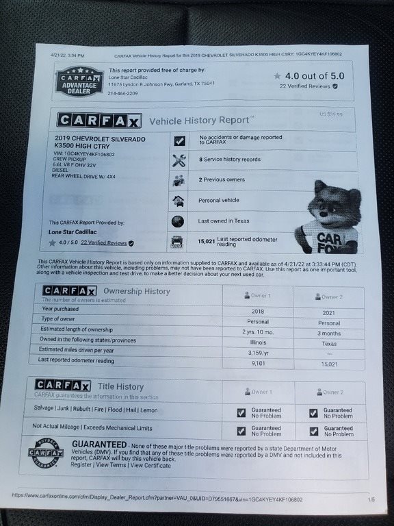 2019 Chevrolet K3500 High Country 4-Door Diesel Pickup for sale in Mesquite, TX 75181